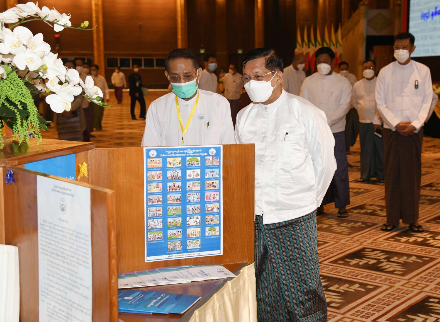 ထို့နောက် နိုင်ငံတော်စီမံအုပ်ချုပ်ရေးကောင်စီဥက္ကဋ္ဌ နိုင်ငံတော်ဝန်ကြီးချုပ်နှင့် အခမ်းအနားတက်ရောက်လာကြသူများသည် မြန်မာနိုင်ငံအမျိုးသားလူ့အခွင့်အရေးကော်မရှင်၏ လူ့အခွင့်အရေးမြှင့်တင်ရေးနှင့် ပညာပေးရေးလုပ်ငန်းများ အကောင်အထည်ဖော်ဆောင်ရွက်မှု မှတ်တမ်းဓာတ်ပုံများကို လှည့်လည်ကြည့်ရှုခဲ့ကြကြောင်း သတင်းရရှိသည်။