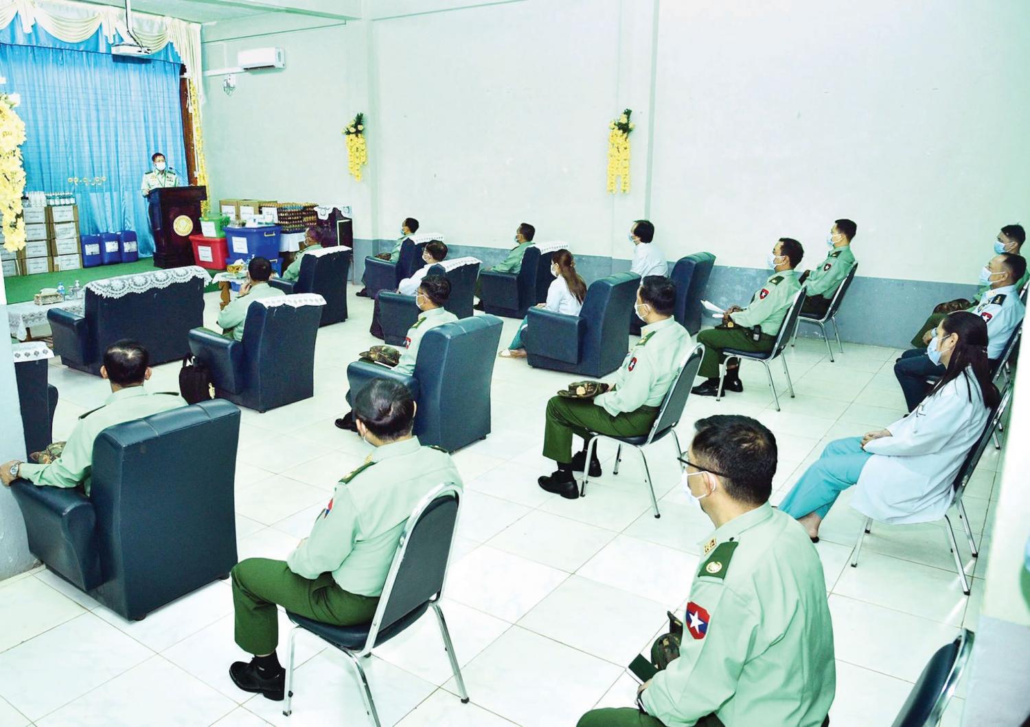 မွန်းလွဲပိုင်းတွင် တပ်မတော်ကာကွယ်ရေးဦးစီးချုပ်သည် ပအိုဝ်းကိုယ်ပိုင်အုပ်ချုပ်ခွင့်ရဒေသ၊ ဓနုကိုယ်ပိုင်အုပ်ချုပ်ခွင့်ရဒေသနှင့် အင်းလေးဒေသတို့မှ တိုင်းရင်းသား ကိုယ်စားလှယ်များ၊ ရှမ်းစာပေ ယဉ်ကျေးမှုအဖွဲ့ဝင်များအား အရှေ့ပိုင်းတိုင်းစစ်ဌာနချုပ် ပင်လုံရိပ်သာခန်းမ၌ ရင်းရင်းနှီးနှီး တွေ့ဆုံ၍ Covid-19 ရောဂါ ကာကွယ်၊ ထိန်းချုပ်၊ ကုသရေးပစ္စည်းများ၊ ဆေးရုံသုံးပစ္စည်းများနှင့် စားသောက် ဖွယ်ရာများ ပေးအပ်လှူဒါန်းသည်။