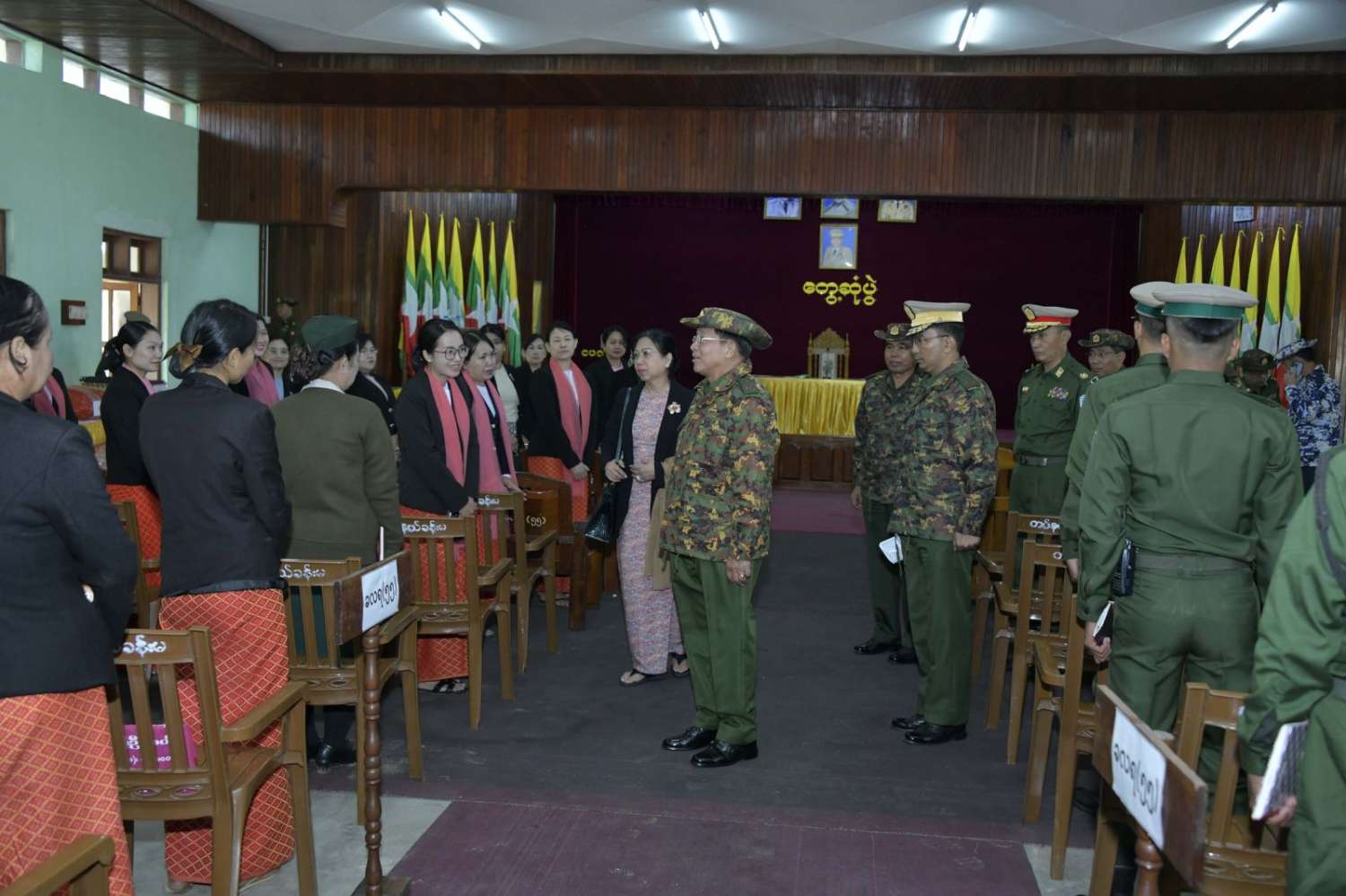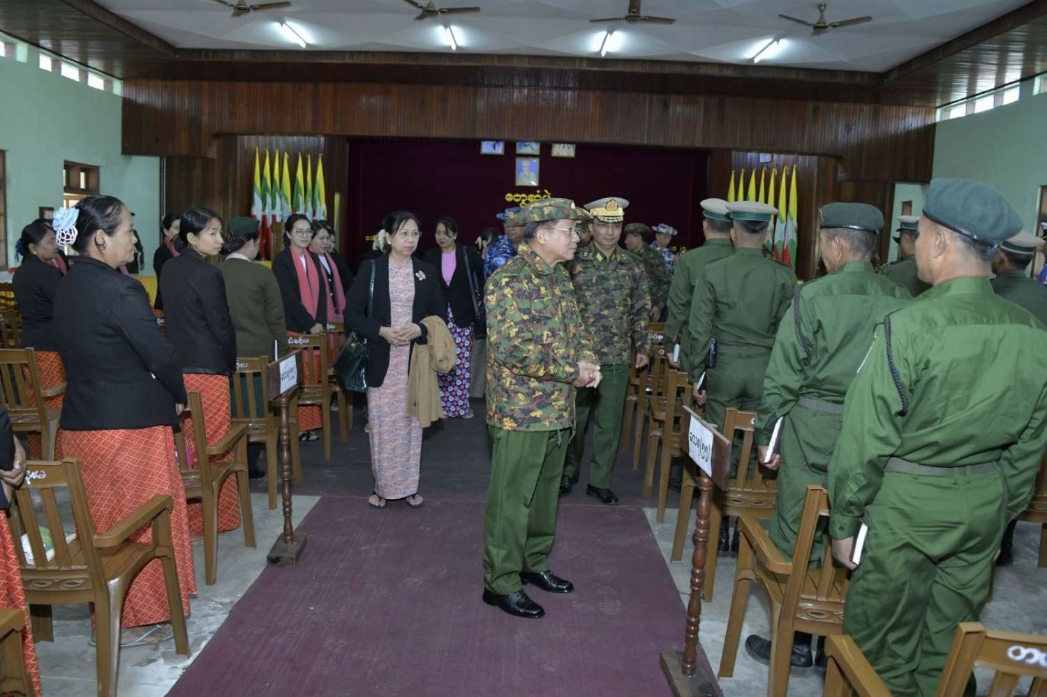 အဆိုပါ တွေ့ဆုံပွဲအခမ်းအနားသို့ နိုင်ငံတော်စီမံအုပ်ချုပ်ရေးကောင်စီဥက္ကဋ္ဌ တပ်မတော်ကာကွယ်ရေးဦးစီးချုပ်နှင့်အတူ ဇနီး ဒေါ်ကြူကြူလှ၊ ကာကွယ်ရေးဦးစီးချုပ် (ရေ) ဗိုလ်ချုပ်ကြီး မိုးအောင်နှင့် ဇနီး၊ ကာကွယ်ရေးဦးစီးချုပ်(လေ) ဗိုလ်ချုပ်ကြီး ထွန်းအောင်နှင့်ဇနီး၊ ကာကွယ်ရေးဦးစီးချုပ်ရုံးမှ တပ်မတော်အရာရှိကြီးများနှင့်ဇနီးများ၊ အနောက်ပိုင်းတိုင်းစစ်ဌာနချုပ်တိုင်းမှူး ဗိုလ်ချုပ် ထင်လတ်ဦးနှင့် တာဝန်ရှိသူများ၊ သံတွဲတပ်နယ်မှ အရာရှိ၊ စစ်သည်၊ မိသားစုများ တက်ရောက်ကြသည်။