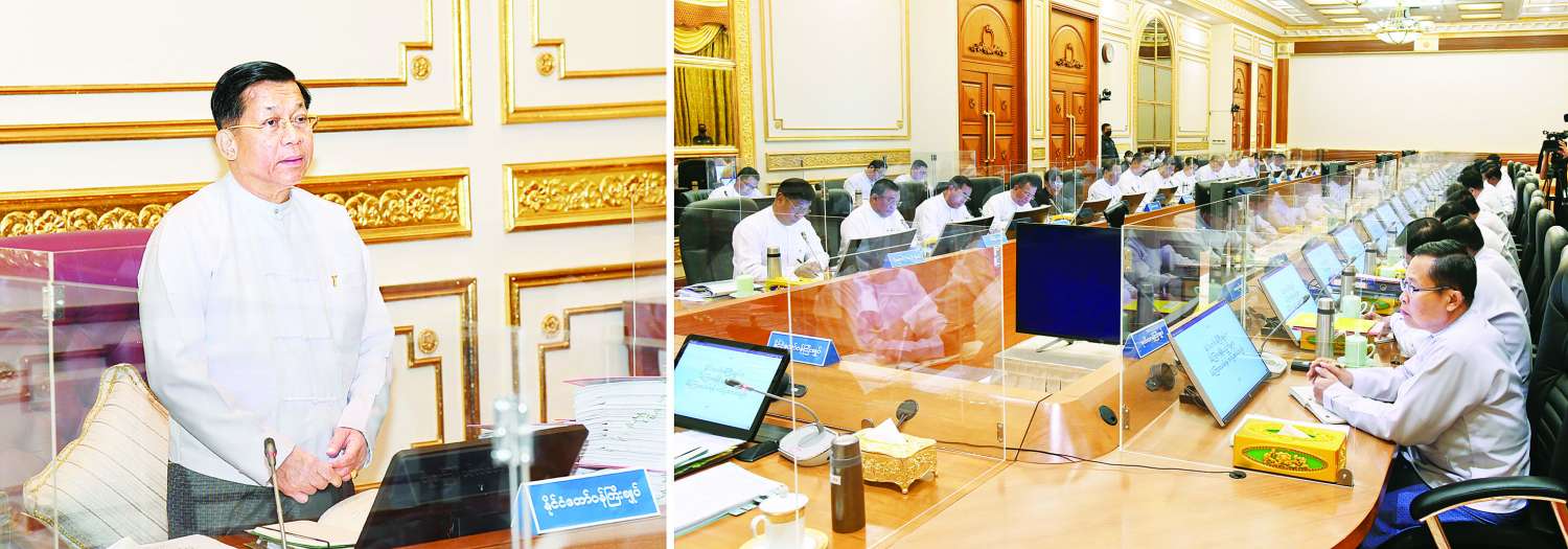 ဦးစွာ နိုင်ငံတော်စီမံအုပ်ချုပ်ရေးကောင်စီဥက္ကဋ္ဌ နိုင်ငံတော်ဝန်ကြီးချုပ်က အမှာစကားပြောကြားရာတွင် ၂၀၂၀ ပြည့်နှစ် ပါတီစုံဒီမိုကရေစီအထွေထွေရွေးကောက်ပွဲတွင် မဲမသမာမှုများဖြစ်ပေါ်ခဲ့မှုကြောင့် နိုင်ငံရေးဖြစ်ပေါ်ပြောင်းလဲမှု၊ ၂၀၂၀ ပြည့်နှစ် အထွေထွေရွေးကောက်ပွဲ၏ အကျည်းတန်သော စည်းကမ်းမဲ့မဲပေးမှုနှင့် မဲမသမာမှု များကိုအခြေခံ၍ ပေါ်ပေါက်လာသည့် CRPH ၊ NUG နှင့် PDF အမည်ခံအကြမ်းဖက် သမားများက အပြစ်မဲ့ပြည်သူများ၊ နိုင်ငံ့ဝန်ထမ်းများအပေါ် အကြမ်းဖက်လုပ်ရပ်များ လုပ်ဆောင်နေမှု၊ နိုင်ငံရေးသဘောထားကွဲလွဲမှုကြောင့် ဖြစ်ပေါ်လာသည့် နိုင်ငံရေးမတည်ငြိမ်မှုများကို နိုင်ငံတော်အစိုးရက ဥပဒေနှင့်အညီ ထိန်းထိန်းသိမ်းသိမ်းဖြင့် ဖြေရှင်းဆောင်ရွက်လျက်ရှိမှုနှင့် နိုင်ငံ၏စီးပွားရေး ဖြစ်ပေါ်ပြောင်းလဲလာမှုတို့ကို အကျယ်တဝင့်ရှင်းလင်းပြောကြားသည်။