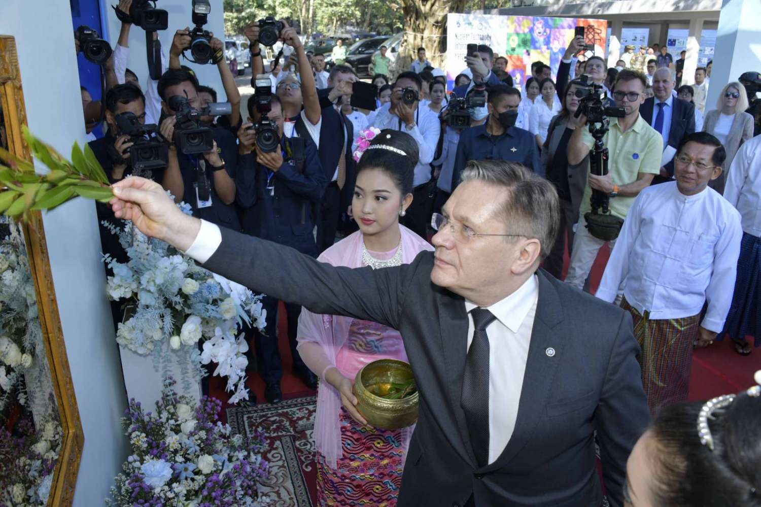 ဦးစွာ နိုင်ငံတော်စီမံအုပ်ချုပ်ရေးကောင်စီဥက္ကဋ္ဌ နိုင်ငံတော်ဝန်ကြီးချုပ်နှင့် ရုရှားဖက်ဒရေးရှင်းနိုင်ငံပိုင် အဏုမြူစွမ်းအင်ကော်ပိုရေးရှင်း ROSATOM State Corporations ၏ ညွှန်ကြားရေးမှူးချုပ်တို့သည် နျူကလီးယားနည်းပညာသတင်း အချက်အလက်စင်တာဆိုင်းဘုတ်ကို စက်ခလုတ်နှိပ်ဖွင့်လှစ်ပေးကြသည်။ ထို့နောက် နျူကလီးယားနည်းပညာသတင်းအချက်အလက်စင်တာ ကဗ္ဗည်းမော်ကွန်းကို အမွှေးနံ့သာများ ပက်ဖြန်းပေးကြသည်။