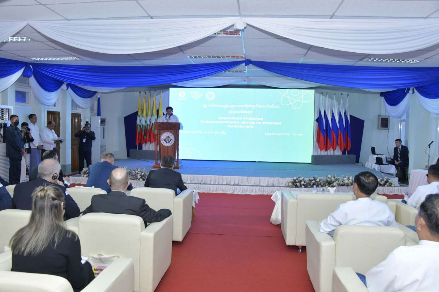 ယင်းနောက် နိုင်ငံတော်စီမံအုပ်ချုပ်ရေးကောင်စီဥက္ကဋ္ဌ နိုင်ငံတော်ဝန်ကြီးချုပ်က နျူကလီးယားနည်းပညာသတင်းအချက်အလက်စင်တာ ဖွင့်ပွဲအထိမ်းအမှတ် အမှာစကားပြောကြားရာတွင် မြန်မာနိုင်ငံတွင် နျူကလီးယားနည်းပညာဖွံ့ဖြိုးတိုးတက်ရေးနှင့် နျူကလီးယားစွမ်းအင်ကို ငြိမ်းချမ်းစွာအသုံးပြုနိုင်ရေးအတွက် ပူးပေါင်းဆောင်ရွက်မှုများနှင့် ကူညီထောက်ပံ့ပေးမှုများအတွက် ROSATOM အဖွဲ့အစည်းကို မြန်မာနိုင်ငံကိုယ်စား အထူးပင်ကျေးဇူးတင်ရှိပါကြောင်း၊ ယခုကဲ့သို့ မြန်မာနိုင်ငံတွင် နျူကလီးယားနည်းပညာဆိုင်ရာအသိပညာများပြန့်ပွားနိုင်ရေးအတွက် အဓိကကျသည့် နျူကလီးယား နည်းပညာသတင်းအချက်အလက်စင်တာ ဖွင့်လှစ်နိုင်သည်အထိ ရုရှားဖက်ဒရေးရှင်းနိုင်ငံနှင့် ပြည်ထောင်စုသမ္မတမြန်မာနိုင်ငံတို့အကြား ပူးပေါင်းဆောင်ရွက်ခဲ့သည့်သမိုင်းကြောင်းကို ပြန်ကြည့်မည်ဆိုပါက သိပ္ပံနှင့်နည်းပညာ၀န်ကြီးဌာနနှင့် ရုရှားဖက်ဒရေးရှင်းနိုင်ငံ၊ နိုင်ငံပိုင်အဏုမြူစွမ်းအင် ကော်ပိုရေးရှင်း (ROSATOM)တို့အကြား ငြိမ်းချမ်းသောရည်ရွယ်ချက်များအတွက် နျူကလီးယားစွမ်းအင်အသုံးချရေးနယ်ပယ်တွင် ပူးပေါင်းဆောင်ရွက်မှုအပေါ် နားလည်မှုစာချွန်လွှာကို သိပ္ပံနှင့်နည်းပညာဝန်ကြီးဌာန ပြည်ထောင်စုဝန်ကြီးနှင့် ရုရှားနိုင်ငံပိုင်အဏုမြူစွမ်းအင်ကော်ပိုရေးရှင်း “ROSATOM” က CEO တို့က St. Petersburg မြို့၌ ၂၀၁၅ ခုနှစ်၊ ဇွန်လ (၁၈)ရက်တွင် လက်မှတ်ရေးထိုးခဲ့မှုမှ အစပြုခဲ့ခြင်းဖြစ်ပါကြောင်း။