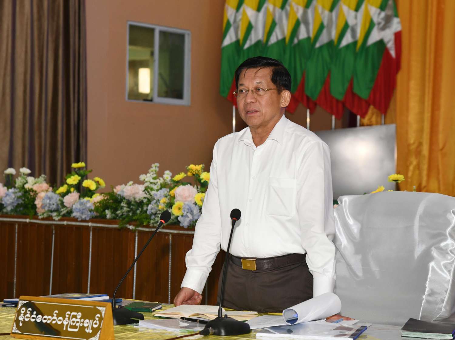 နိုင်ငံတော်စီမံအုပ်ချုပ်ရေးကောင်စီဥက္ကဋ္ဌ နိုင်ငံတော်ဝန်ကြီးချုပ် ဗိုလ်ချုပ်မှူးကြီး မင်းအောင်လှိုင်သည် ယနေ့နံနက်ပိုင်းတွင် ဧရာဝတီတိုင်းဒေသကြီးအတွင်းရှိ ခရိုင်၊ မြို့နယ်အဆင့် ဌာနဆိုင်ရာတာဝန်ရှိသူများ၊ အသေးစား၊ အငယ်စားနှင့်အလတ်စားစီးပွားရေး(MSME) လုပ်ငန်းရှင်များအား ပုသိမ်မြို့၊ မြို့တော်ခန်းမ၌တွေ့ဆုံ၍ ဒေသဖွံ့ဖြိုးတိုးတက်ရေးဆိုင်ရာများနှင့် စီးပွားရေးလုပ်ငန်းဖွံ့ဖြိုးတိုးတက်ရေးဆိုင်ရာများကို ဆွေးနွေး ပြောကြားသည်။