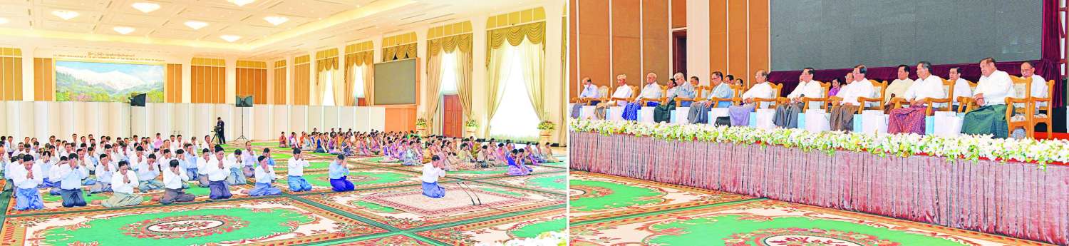 ထို့နောက် နိုင်ငံတော်စီမံအုပ်ချုပ်ရေးကောင်စီဥက္ကဋ္ဌ တပ်မတော်ကာကွယ်ရေးဦးစီးချုပ်နှင့် ဇနီး၊ တက်ရောက်လာကြသည့် တပ်မတော် အရာရှိကြီးများနှင့်ဇနီးများက တပ်မတော် (ကြည်း၊ ရေ၊ လေ) မိသားစုများကိုယ်စား အငြိမ်းစားတပ်မတော်အရာရှိကြီးများအား မြန်မာ့ရိုးရာထုံးတမ်း အစဉ်အလာနှင့်အညီ ရိုသေစွာဖြင့် ဂါရဝပြုကန်တော့ကြသည်။