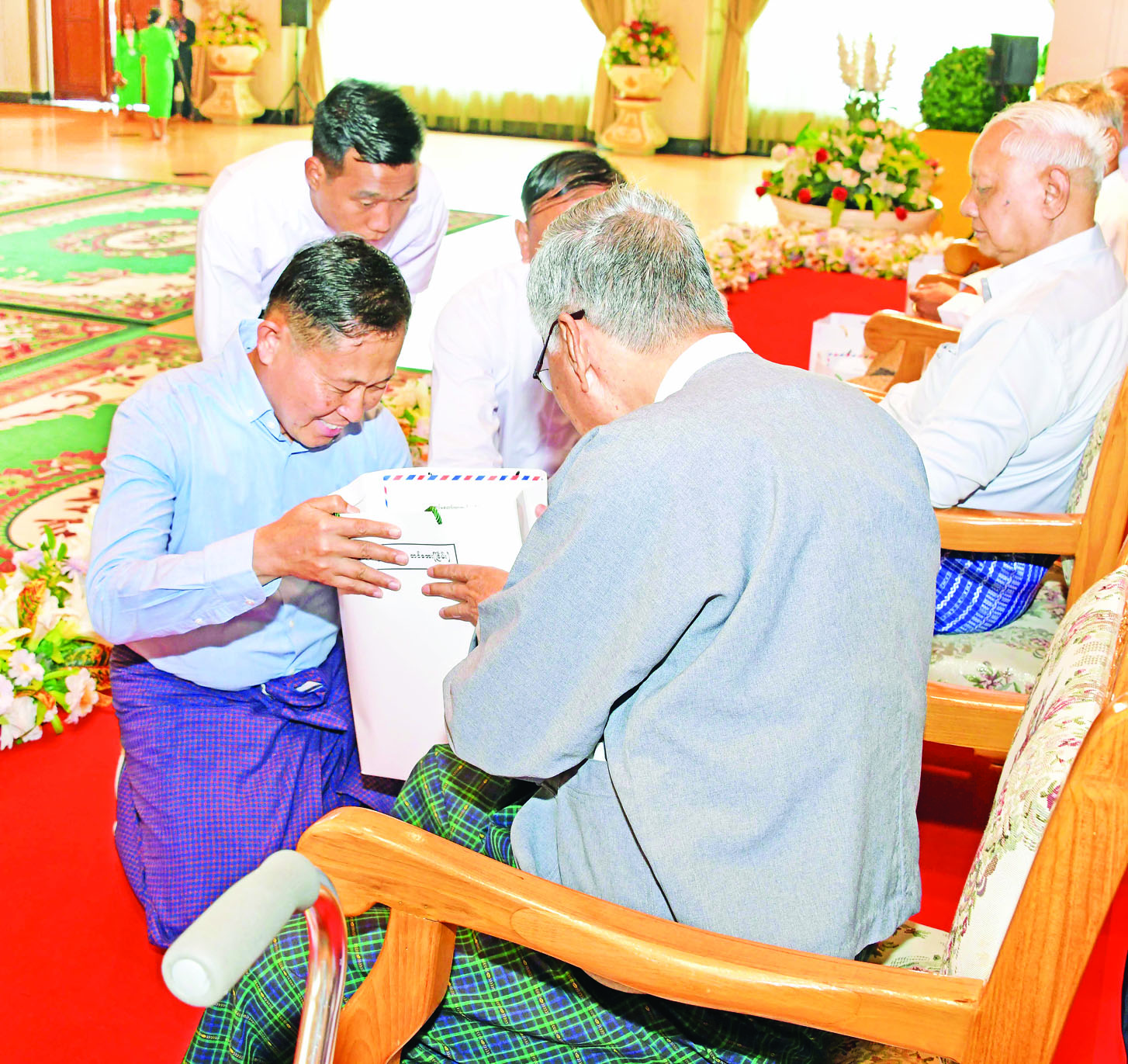 ယင်းနောက် နိုင်ငံတော်စီမံအုပ်ချုပ်ရေးကောင်စီဥက္ကဋ္ဌ တပ်မတော်ကာကွယ်ရေးဦးစီးချုပ်နှင့်ဇနီး၊ ကောင်စီဒုတိယဥက္ကဋ္ဌ ဒုတိယတပ်မတော်ကာကွယ်ရေးဦးစီးချုပ် ကာကွယ်ရေးဦးစီးချုပ် (ကြည်း) နှင့် ဇနီး၊ တပ်မတော်အရာရှိကြီးများက အငြိမ်းစားတပ်မတော်အရာရှိကြီးများထံ ဂါရဝပြု လက်ဆောင်ပစ္စည်းများကို ကိုယ်တိုင်ကိုယ်ကျ ရိုသေစွာ ဂါရဝပြုပေးအပ်ကြသည်။