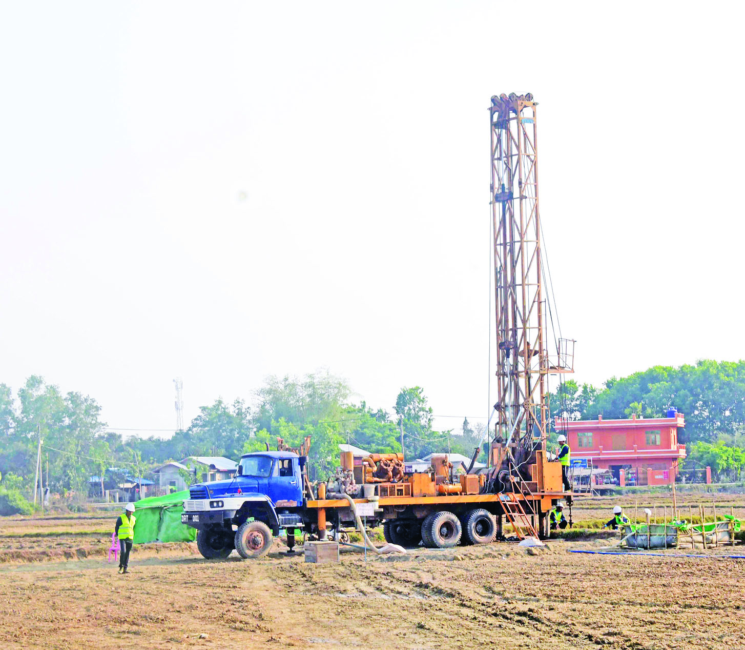 ဆက်လက်၍ နိုင်ငံတော်စီမံအုပ်ချုပ်ရေးကောင်စီဥက္ကဋ္ဌ နိုင်ငံတော်ဝန်ကြီးချုပ်နှင့် အဖွဲ့ဝင်များသည် စစ်တွေမြို့ စိုက်ပျိုးရေး၊ မွေးမြူရေးနှင့်ဆည်မြောင်းဝန်ကြီးဌာန၊ စစ်တွေ မျိုးသန့်ခြံအတွင်း၌ စက်ရေတွင်းဖြင့် မြေအောက်ရေထုတ်ယူနေမှု နေရာသို့ရောက်ရှိရာ ရှင်းလင်းဆောင်၌ စိုက်ပျိုးရေး၊ မွေးမြူရေးနှင့် ဆည်မြောင်းဝန်ကြီးဌာန ပြည်ထောင်စုဝန်ကြီးဦးမင်းနောင်၊ ဆည်မြောင်းနှင့် ရေအသုံးချမှု စီမံခန့်ခွဲရေးညွှန်ကြားရေးမှူးချုပ် ဦးဗိုလ်ဗိလ်ကျော်၊ ရေအရင်းအမြစ်ဦးစီးဌာနမှ ညွှန်ကြားရေးမှူး ဦးသက်နိုင်တို့က စိုက်ပျိုးရေးမျိုးသန့်ခြံ ဧက ၄၀ အတွင်း ဘူမိရူပဆိုင်ရာ တိုင်းတာမှုများအရ စက်ရေတွင်းများ တူးဖော်ရန်လျာထားသည့် တည်နေရာများနှင့် တူးဖော်ပြီး၊ တူးဖော်ဆစက်ရေတွင်းများမှ ရေချိုထွက်ရှိမှုနှင့် အချို့နေရာများတွင် ရေငန်များ ရောနှောပါဝင်နေမှု၊ စက်ရေတွင်းများမှ ထွက်ရှိလာသည့်ရေများကို ရေစုကန်များဖြင့်စု၍ ကန်တော်ကြီးသို့ ပိုက်လိုင်းများဖြင့် ပို့လွှတ်ရန်ဆောင်ရွက်လျက်ရှိမှုတို့ကို ရှင်းလင်းတင်ပြကြသည်။