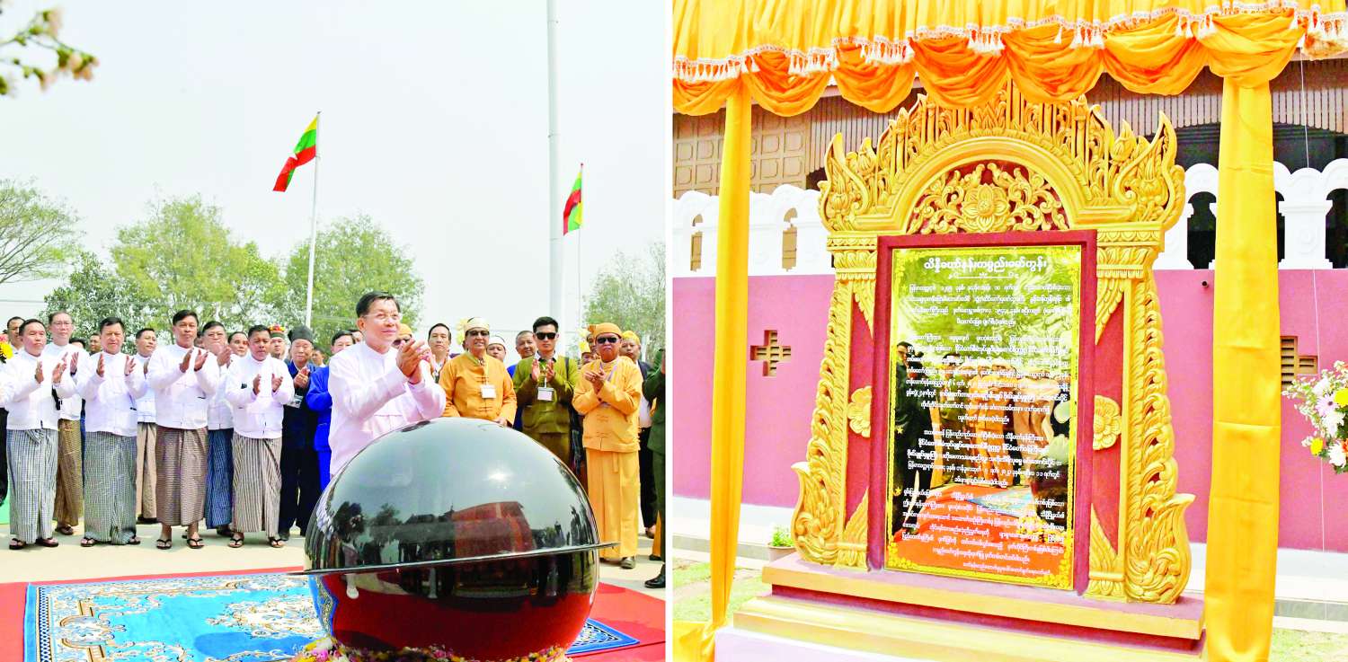 သိန္နီစော်ဘွားကြီး ခွန်ဆန်တုန်ဟုန်း၏ ဟော်နန်းတော်(ဟော်ခမ်းသျှမ်းဝီ)ကို အသစ်ပြန်လည်တည်ဆောက်ပြီးစီးခဲ့သည့် သိန္နီဟော်နန်းယဉ်ကျေးမှုပြတိုက် ဖွင့်ပွဲအနားကို ယနေ့နံနက်ပိုင်းတွင် ကျင်းပပြုလုပ်ရာ နိုင်ငံတော်စီမံအုပ်ချုပ်ရေးကောင်စီဥက္ကဋ္ဌ နိုင်ငံတော်ဝန်ကြီးချုပ် ဗိုလ်ချုပ်မှူးကြီး မင်းအောင်လှိုင် တက်ရောက်ဖွင့်လှစ်ပေးသည်။