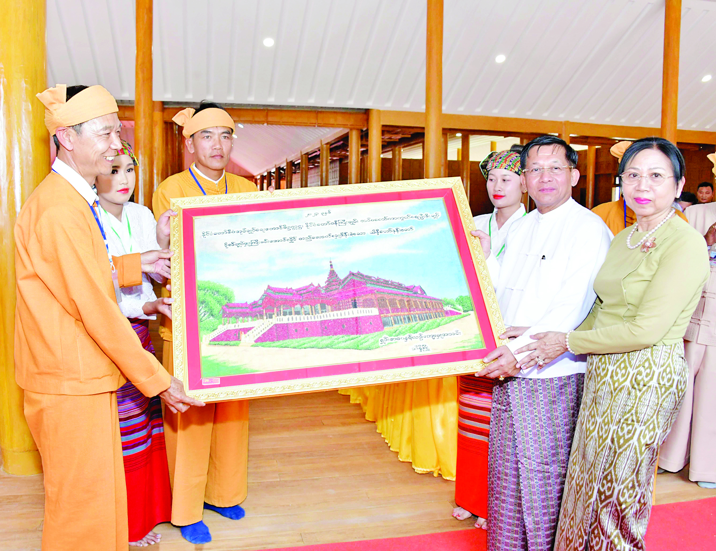 ထို့နောက် နိုင်ငံတော်စီမံအုပ်ချုပ်ရေးကောင်စီဥက္ကဋ္ဌ နိုင်ငံတော်ဝန်ကြီးချုပ်နှင့် ဇနီးတို့အား ရှမ်းစာပေနှင့်ယဉ်ကျေးမှုအသင်းမှ တာဝန်ရှိသူတစ်ဦးက သိန္နီစော်ဘွားကြီး ခွန်ဆန်တုန်ဟုန်း၏ ဟော်နန်းတော်(ဟော်ခမ်းသျှမ်းဝီ)ကို အသစ်ပြန်လည်တည်ဆောက်ပြီးစီးခဲ့ပြီး သိန္နီဟော်နန်းယဉ်ကျေးမှုပြတိုက်ဖွင့်ပွဲအထိမ်းအမှတ် ပန်းချီကားနှင့် ဒေသထွက်လက်ဆောင်ပစ္စည်းများကို ပေးအပ်ရာ နိုင်ငံတော်စီမံအုပ်ချုပ်ရေးကောင်စီဥက္ကဋ္ဌ နိုင်ငံတော်ဝန်ကြီးချုပ်က အမှတ်တရလက်ဆောင်ပစ္စည်း ပြန်လည်ပေးအပ်သည်။
