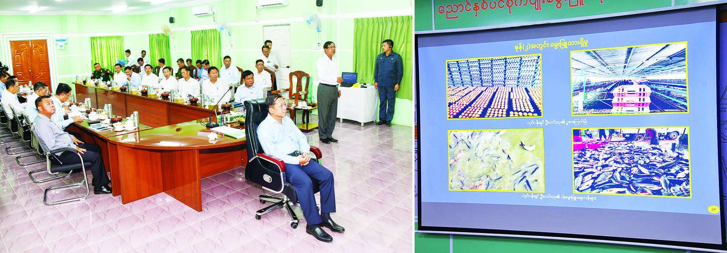 ယင်းနောက် နိုင်ငံတော်စီမံအုပ်ချုပ်ရေးကောင်စီဥက္ကဋ္ဌ နိုင်ငံတော်ဝန်ကြီးချုပ်နှင့်အဖွဲ့ ဝင်များသည် စိုက်ပျိုးမွေးမြူရေး ခြံအတွင်းဥစားကြက်များမွေးမြူ ထားရှိမှု၊ ငါးမွေးမြူထားရှိမှုနှင့် ဒူးရင်းပင်အပါအဝင် နှစ်ရှည်သီးနှံပင်များစိုက်ပျိုးထားရှိမှု အခြေအနေများကို လှည့်လည်ကြည့်ရှု ပြီးတာဝန်ရှိသူများ၏ တင်ပြချက်များအပေါ် သိရှိလိုသည်များမေးမြန်းပြီး လိုအပ်သည်များကို အကြံပြုဆွေးနွေးပြောကြား သည်။