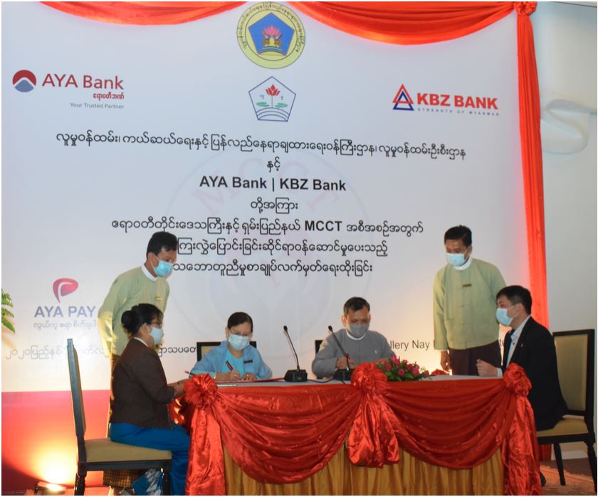 ဧရာဝတီတိုင်းဒေသကြီးနှင့် ရှမ်းပြည်နယ် MCCT အစီအစဉ်အတွက် ငွေကြေးလွှဲပြောင်းခြင်းဆိုင်ရာ ဝန်ဆောင်မှုပေးသည့် သဘောတူစာချုပ်လက်မှတ်ရေးထိုး