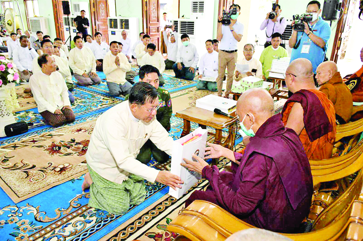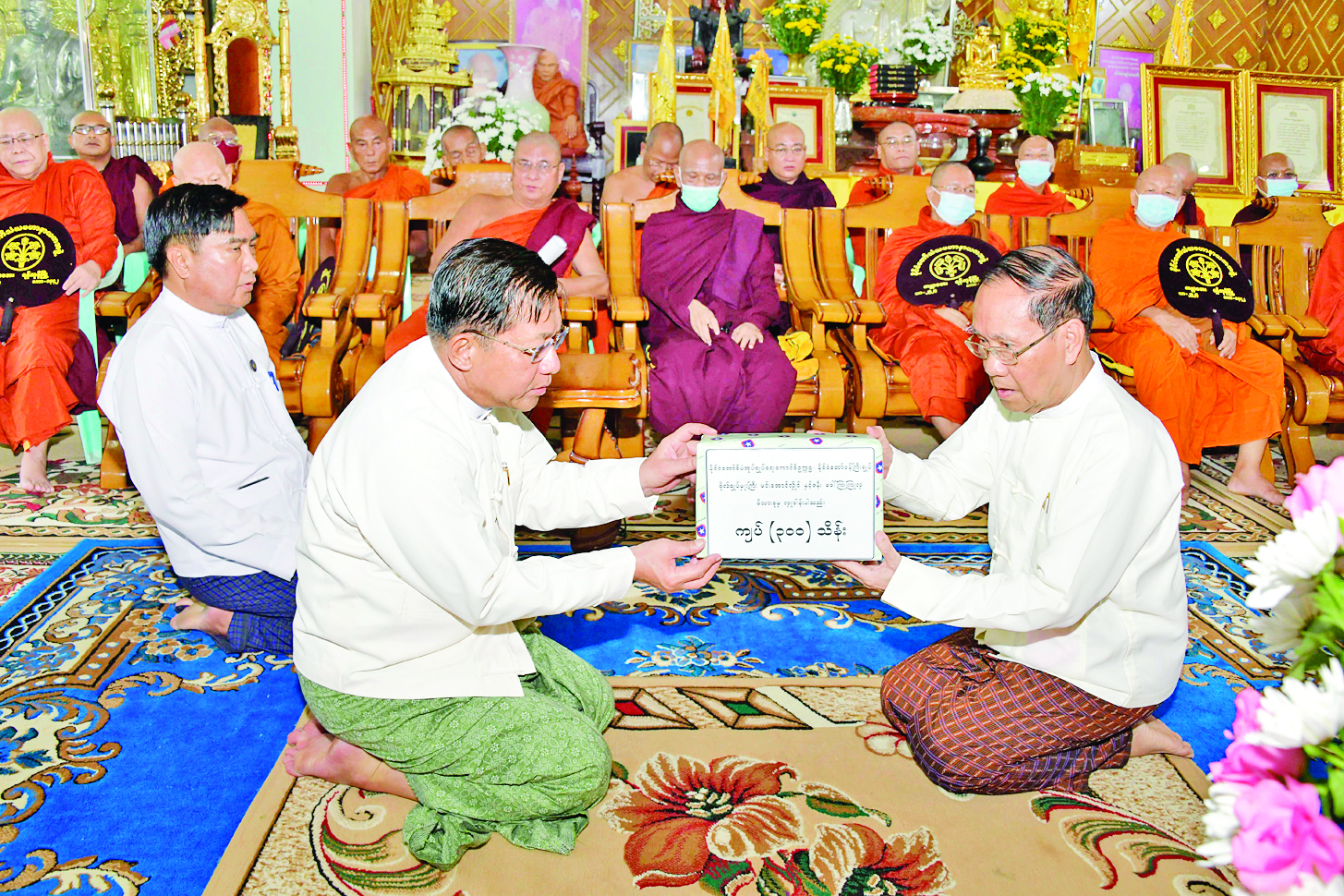ဆက်လက်ပြီး မြန်မာစီးပွားရေးကော်ပိုရေးရှင်းဥက္ကဋ္ဌ ဒုတိယဗိုလ်ချုပ်ကြီးညိုစောနှင့် စစ်ရေးချုပ်ဒုတိယဗိုလ်ချုပ်ကြီး စိုးမင်းဦးတို့ကဆရာတော်ဘုရားကြီး၏ အန္တိမအဂ္ဂိဈာပနပူဇာသဘင် အခမ်းအနားကျင်းပပြုလုပ်နိုင်ရေးအတွက် မြန်မာစီးပွားရေးကော်ပိုရေးရှင်းနှင့် မြန်မာစီးပွားရေးဦးပိုင်အများနှင့် သက်ဆိုင်သောကုမ္ပဏီလီမိတက်တို့မှ ပေးအပ်လှူဒါန်းသည့် အလှူငွေများ၊ စုပေါင်းအလှူငွေများကို ပေးအပ်လှူဒါန်းရာ သာသနာရေးနှင့်ယဉ်ကျေးမှုဝန်ကြီးဌာန ပြည်ထောင်စုဝန်ကြီးက လက်ခံရယူသည်။