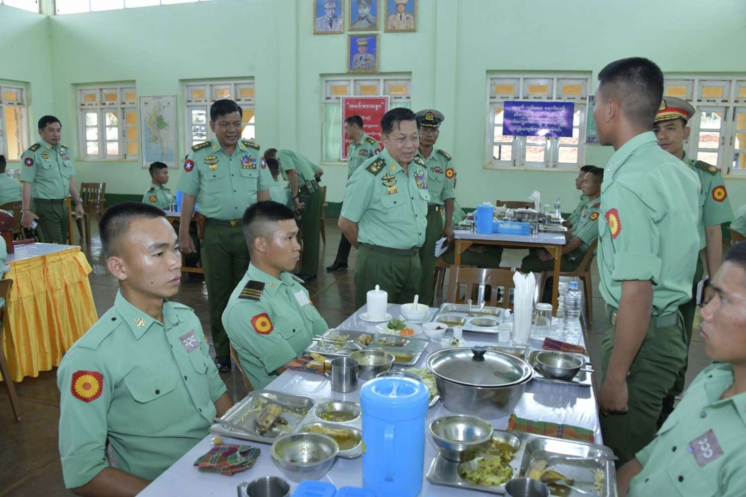 ထို့နောက် နိုင်ငံတော်စီမံအုပ်ချုပ်ရေးကောင်စီဥက္ကဋ္ဌ တပ်မတော်ကာကွယ်ရေးဦးစီးချုပ်နှင့် အဖွဲ့ဝင်များသည် တပ်မတော်ကွန်ပျူတာနှင့် နည်းပညာသိပ္ပံ သင်တန်းသား စားရိပ်သာ၌ သင်တန်းသားများနှင့်အတူ နေ့လယ်စာကို အတူတကွသုံးဆောင်ခဲ့ကြပြီး သင်တန်းသားများအား ရင်းရင်းနှီးနှီးနှုတ်ဆက်ခဲ့ကြသည်။