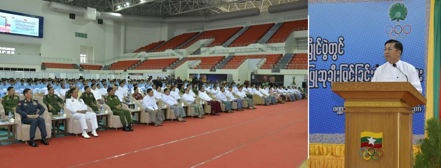 (၃၂) ကြိမ်မြောက် အရှေ့တောင်အာရှအားကစားပြိုင်ပွဲတွင် ဆုတံဆိပ်ရရှိခဲ့သည့် မြန်မာအားကစားအဖွဲ့များအား နိုင်ငံတော်က ဂုဏ်ပြုဆုချီးမြှင့်ခြင်းအခမ်းအနားကျင်းပ၊ နိုင်ငံတော်စီမံအုပ်ချုပ်ရေးကောင်စီဥက္ကဋ္ဌ နိုင်ငံတော်ဝန်ကြီးချုပ် ဗိုလ်ချုပ်မှူးကြီး မင်းအောင်လှိုင် တက်ရောက်အမှာစကားပြောကြားပြီး ဂုဏ်ပြုဆုများ ပေးအပ်ချီးမြှင့်