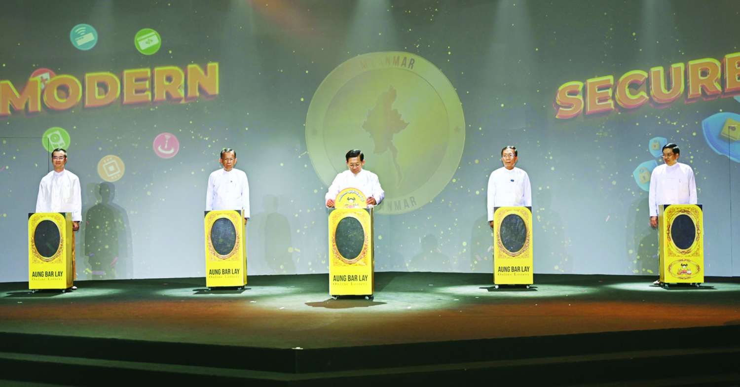 ဆက်လက်၍ အောင်ဘာလေအွန်လိုင်းသိန်းဆုထီစနစ်အား ဖွင့်လှစ်ခြင်းကိုပြုလုပ်ရာ ဒုတိယဝန်ကြီးချုပ်နှင့် ပြည်ထောင်စုဝန်ကြီး ဦးဝင်းရှိန်၊ ရင်းနှီးမြှုပ်နှံမှုနှင့် နိုင်ငံခြားစီးပွားဆက်သွယ်ရေးဝန်ကြီးဌာန ပြည်ထောင်စုဝန်ကြီး ဒေါက်တာကံဇော်၊ မြန်မာစီးပွားရေးကော်ပိုရေးရှင်းဥက္ကဋ္ဌ ဒုတိယဗိုလ်ချုပ်ကြီး ညိုစောနှင့် Viettel Group မှ (Mytel) CEO Nguyen Tien Dung တို့က အောင်ဘာလေအွန်လိုင်းသိန်းဆုထီစနစ်ဖွင့်ပွဲအဖြစ် စုဗူးအတွင်းသို့ရွှေင်္ဂါးများအား တစ်ပြိုင်နက်တည်းထည့်သွင်း ဆောင်ရွက်ကြပြီး နိုင်ငံတော်စီမံအုပ်ချုပ်ရေးကောင်စီဥက္ကဋ္ဌ နိုင်ငံတော်ဝန်ကြီးချုပ် ဗိုလ်ချုပ်မှူးကြီး မင်းအောင်လှိုင်က စုဗူးအတွင်းသို့ အောင်အတိတ်အောင်နိမိတ်ဆောင် အောင်မင်္ဂလာ ရွှေဒင်္ဂါးကိုထည့်သွင်း၍ အောင်ဘာလေ အွန်လိုင်းသိန်းဆု ထီစနစ်သစ်ကြီးကို စတင်ဖွင့်လှစ်ပေးသည်။