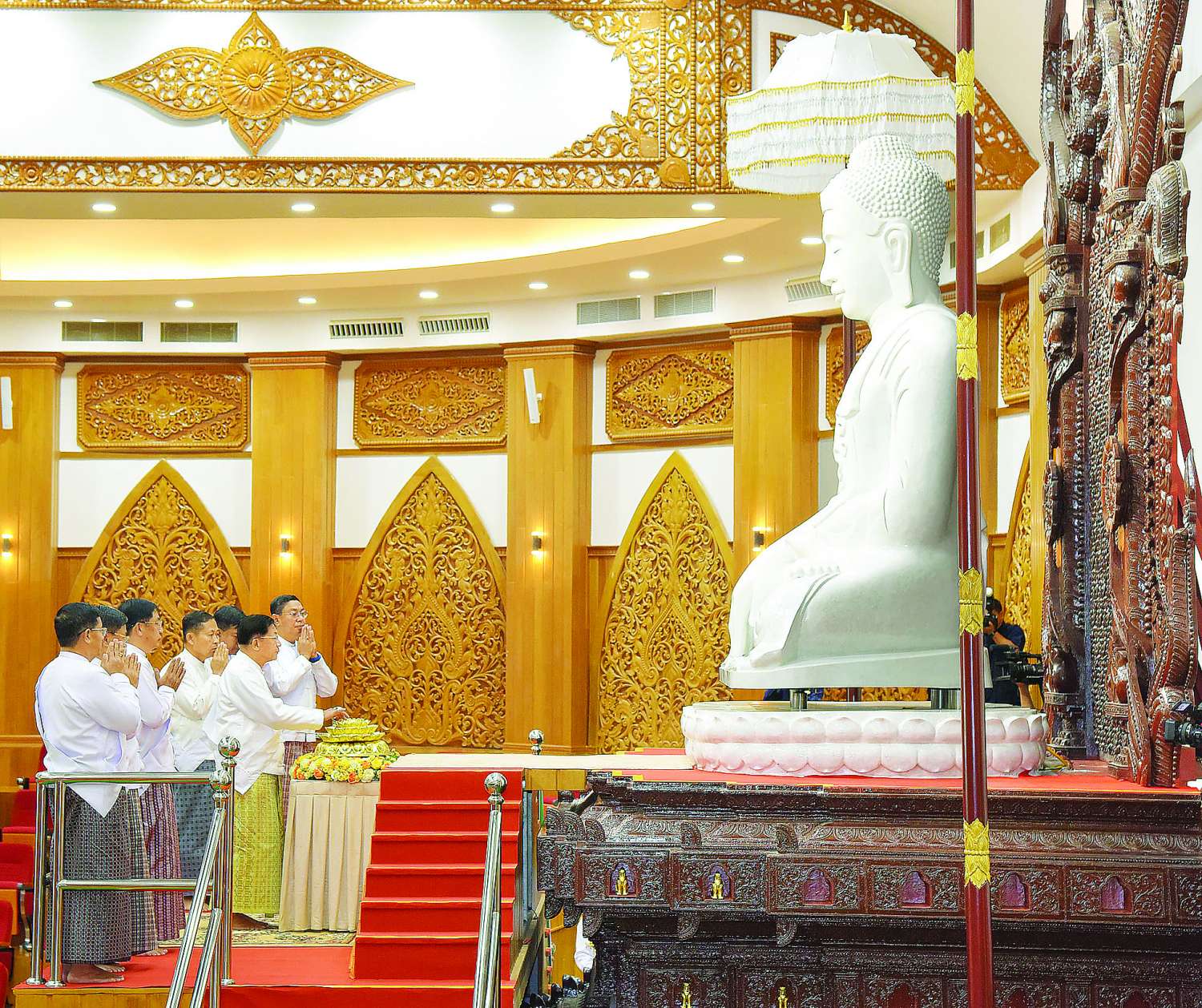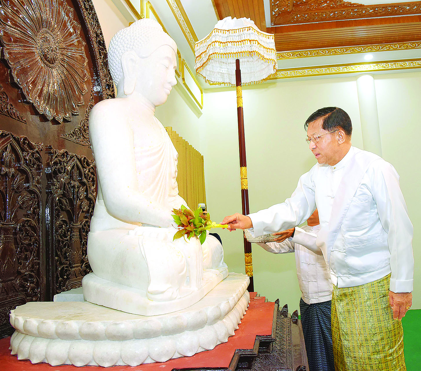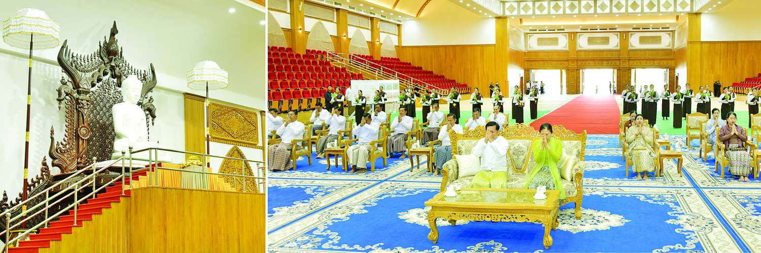 မာရဝိဇယဗုဒ္ဓ ရုပ်ပွားတော်မြတ်ကြီးတည်ဆောက်လျက်ရှိသည့် ပြည်ထောင်စုနယ်မြေ နေပြည်တော်၊ ဒက္ခိဏသီရိမြို့နယ်ရှိ မာရဝိဇယဗုဒ္ဓဥယျာဉ်တော်အတွင်းရှိ မာရဝိဇယကျောင်းတော်သို့ ဗုဒ္ဓရုပ်ပွားတော် ပင့်ဆောင်ပူဇော်ခြင်းနှင့် သာသနာ့ဗိမာန်အဂ္ဂါဓိပတိဝိသုံဂါမသိမ်တော်ကြီးသို့ နောင်တော်ကြီးဗုဒ္ဓရုပ်ပွားတော် ပင့်ဆောင်ပူဇော်ခြင်းမင်္ဂလာအခမ်းအနားတို့ကို ယနေ့နံနက်ပိုင်းတွင်ကျင်းပပြုလုပ်ရာ ဦးဆောင်ဘုရားဒါယကာ နိုင်ငံတော်စီမံအုပ်ချုပ်ရေးကောင်စီဥက္ကဋ္ဌ နိုင်ငံတော်ဝန်ကြီးချုပ်ဗိုလ်ချုပ်မှူးကြီးမင်းအောင်လှိုင် တက်ရောက်ပူဇော်သည်။