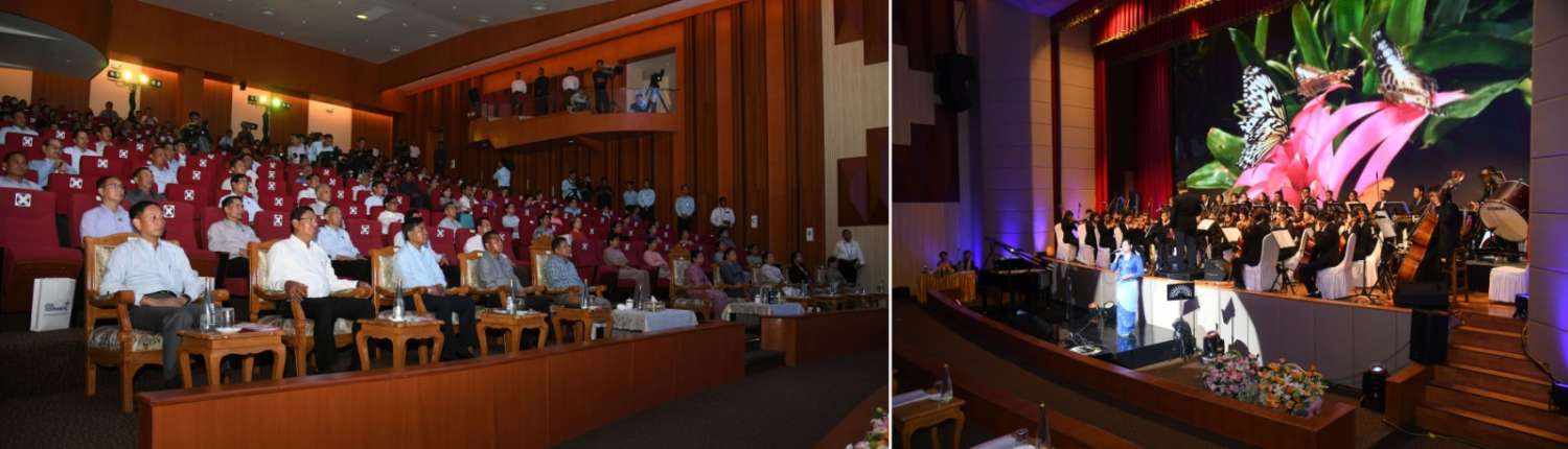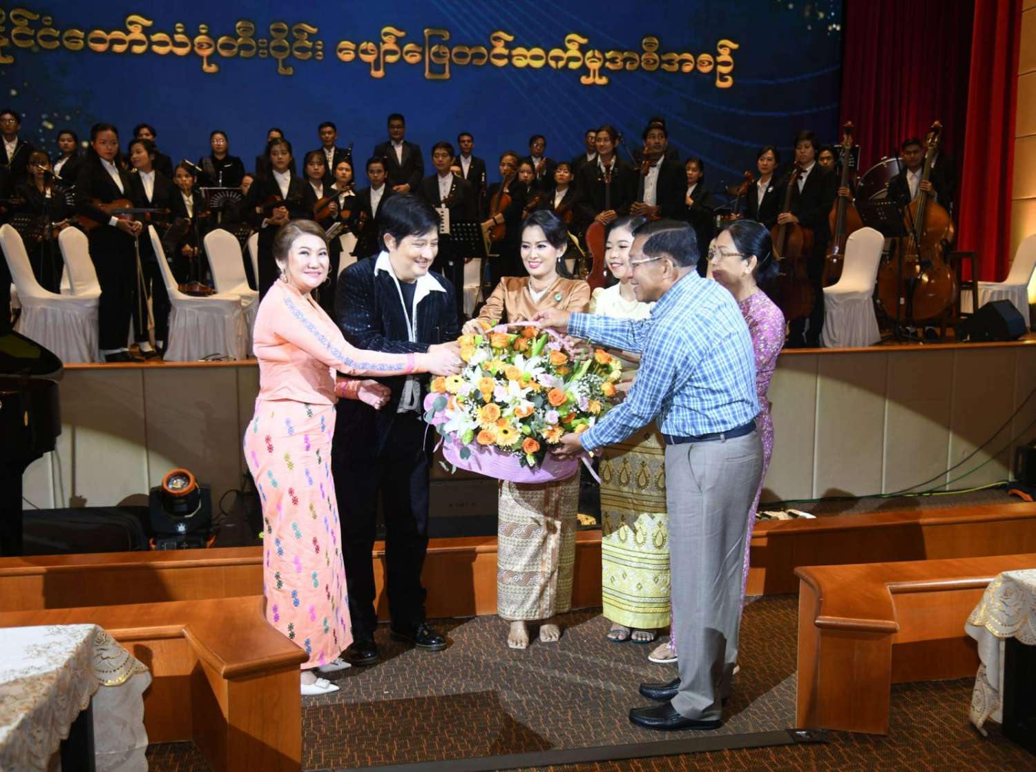 ထို့နောက် နိုင်ငံတော်သံစုံတီးဝိုင်းနှင့်အတူ တွဲဖက်၍ မြန်မာ့အသံနှင့်ရုပ်မြင်သံကြားမှ တေးသံရှင်များ၊ နိုင်ငံကျော်ရုပ်ရှင်နှင့် ဂီတအနုပညာရှင်များက မြန်မာသံစဉ်များ၊ ခေတ်ပေါ်သံစဉ်များနှင့် နိုင်ငံတကာ ကမ္ဘာကျော်တေးသီချင်းများဖြင့် ဖျော်ဖြေတင်ဆက်ကြရာ နိုင်ငံတော်သံစုံတီးဝိုင်းမှ နိုင်ငံတော်သီချင်းကို တီးမှုတ်ရာ နိုင်ငံတော်စီမံအုပ်ချုပ်ရေးကောင်စီဥက္ကဋ္ဌ နိုင်ငံတော်ဝန်ကြီးချုပ်နှင့် ဇနီး၊ တက်ရောက်လာကြသူများက ကြည့်ရှုအားပေးခဲ့ကြသည်။