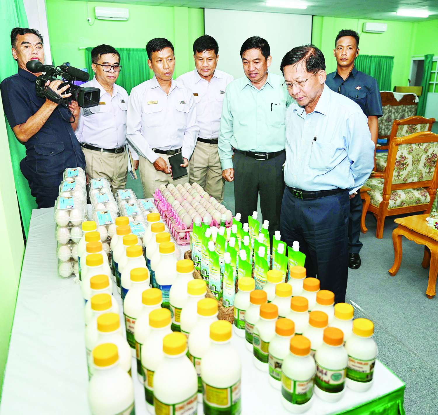 ဦးစွာ နိုင်ငံတော်စီမံအုပ်ချုပ်ရေးကောင်စီဥက္ကဋ္ဌ နိုင်ငံတော်ဝန်ကြီးချုပ်အား မွေးမြူရေးဇုန်ရှင်းလင်းဆောင်၌ မြန်မာစီးပွားရေးကော်ပိုရေးရှင်းဥက္ကဋ္ဌ ဒုတိယ ဗိုလ်ချုပ်ကြီး ညိုစော၊ မြန်မာ့စီးပွားရေးဦးပိုင်အများနှင့်သက်ဆိုင်သော ကုမ္ပဏီလီမိတက်ဥက္ကဋ္ဌ ဒုတိယဗိုလ်ချုပ်ကြီး ဆန်းဦး၊ စစ်ထောက်ချုပ် ဒုတိယဗိုလ်ချုပ်ကြီး ကျော်စွာလင်းနှင့် တာဝန်ရှိသူများက သီလဝါဘက်စုံ စိုက်ပျိုးမွေးမြူရေးဇုန်၊ ၂၆ မိုင် ဘက်စုံစိုက်ပျိုးမွေးမြူရေးဇုန်၊ တွံ့တေးမြို့နယ်ရှိ ရွှေမုယင်းငါးကန်နှင့် ငွေပင်လယ် မွေးမြူရေးနှင့် ရေလုပ်ငန်းတို့၏ လုပ်ငန်းဆောင်ရွက်နေမှုအခြေအနေများ၊ နိုင်ငံတော်စီမံအုပ်ချုပ်ရေးကောင်စီဥက္ကဋ္ဌ တပ်မတော်ကာကွယ်ရေးဦးစီးချုပ်၏ လမ်းညွှန်ချက်များကို အကောင်အထည်ဖော်ဆောင်ရွက်နေမှု အခြေအနေများ၊ ဘက်စုံစိုက်ပျိုးမွေးမြူရေးဇုန်များ အကောင်အထည်ဖော်ဆောင်ရွက်ခဲ့မှုနှင့် ဆောင်ရွက်ပြီးစီးပြီး လုပ်ငန်းလည်ပတ်နေမှုအခြေအနေများ၊ ငါး၊ ဥစားဘဲ၊ ဥစားကြက်၊ အသားတိုးကြက်၊ နို့စားနွား၊ အသားစားနွား၊ အသားတိုးဝက်စသည့် မွေးမြူရေးလုပ်ငန်းများ ဆောင်ရွက်ရာတွင် အထွက်နှုန်းတိုးတက်မြင့်မားစေရေး မျိုးကောင်းမျိုးသန့်များ ရွေးခြယ်မွေးမြူခြင်း၊ သားဖောက်မွေးမြူခြင်းများဆောင်ရွက်လျက်ရှိပြီး အစာပြည့်စုံကောင်းမွန် မှုရှိစေရေး စီမံဆောင်ရွက်လျက်ရှိသည့် အခြေအနေများ၊ ထွက်ရှိလာသည့် စိုက်ပျိုးမွေးမြူရေး ထွက်ကုန်များကို ဈေးကွက်အတွင်းသို့ ဖြန့်ဖြူးလျက်ရှိသည့်အခြေအနေများ၊ မွေးမြူရေး ဇုန်များ၌ အစာစပ်လုပ်ငန်းနှင့် အစာတောင့်စက်များ ထုတ်လုပ်လျက်ရှိမှု၊ နို့ထွက်ပစ္စည်းများ ထုတ်လုပ်ရောင်းချလျက်ရှိမှု အခြေအနေများ၊ မွေးမြူရေးလုပ်ငန်း ဖွံ့ဖြိုး တိုးတက်ရေးအတွက် ဘိုးဘွားမျိုးရင်း ကြက်၊ ဝက် GP Farm များတည်ထောင်နိုင်ရေး ဆောင်ရွက်လျက်ရှိမှု အခြေအနေများ၊ စိုက်ပျိုးမွေးမြူရေးဆိုင်ရာများနှင့် ပတ်သက်၍ ပြည်ပနိုင်ငံများသို့ လေ့လာရေးခရီးစဉ်များ သွားရောက်၍ ၎င်းတို့၏ လုပ်ငန်းဆောင်ရွက်မှုအဆင့်ဆင့်ကို လေ့လာခဲ့မှုနှင့် မိမိတို့နိုင်ငံနှင့်ကိုက်ညီသည့် စိုက်ပျိုးမွေးမြူရေးနည်းစနစ်များ၊ နည်းပညာများနှင့် လူ့စွမ်းအားအရင်းအမြစ် လိုအပ်ချက်များကို သုံးသပ်တွေ့ရှိခဲ့ရမှုအခြေအနေများ၊ ပြည်ပနိုင်ငံများနှင့် မိမိတို့နိုင်ငံ၏ ပြောင်းစိုက်ပျိုးထုတ်လုပ်မှု နှိုင်းယှဉ်တင်ပြချက်များ၊ စိုက်ပျိုးရေးနှင့် မွေးမြူရေးလုပ်ငန်းများ ဆက်လက်တိုးချဲ့ဆောင်ရွက်သွားနိုင်ရေး စီမံဆောင်ရွက်လျက်ရှိသည့် အခြေအနေများ၊ ရန်ကုန်တိုင်းဒေသကြီးအတွင်း ခရိုင်အလိုက် မြေယာအသုံးချမှုနှင့် စိုက်ပ