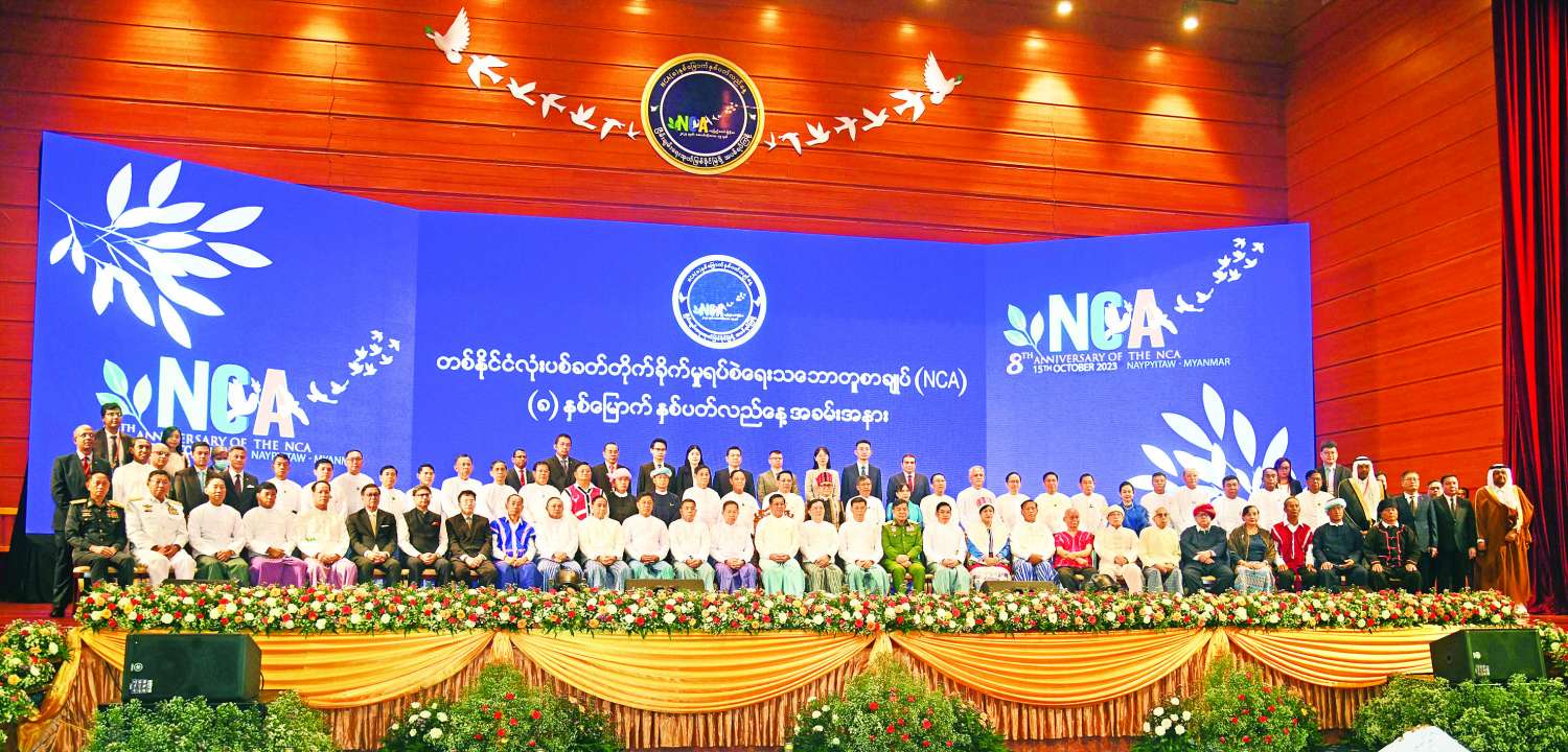 တစ်နိုင်ငံလုံးပစ်ခတ်တိုက်ခိုက်မှုရပ်စဲရေးသဘောတူစာချုပ် (NCA) ကို ၂၀၁၅ ခုနှစ် အောက်တိုဘာ ၁၅ ရက်တွင် အစိုးရ၊ လွှတ်တော်၊ တပ်မတော်နှင့် တိုင်းရင်းသားလက်နက်ကိုင်အဖွဲ့ ၈ ဖွဲ့တို့က ကုလသမဂ္ဂအပါအဝင် နိုင်ငံတကာသံတမန်များနှင့် အသိသက်သေများ၊ ပြည်တွင်းအသိသက်သေများရှေ့မှောက်တွင် လက်မှတ်ရေးထိုးခဲ့ခြင်းဖြစ်ကြောင်း၊ ၂၀၁၈ ခုနှစ် ဖေဖော်ဝါရီ ၁၃ ရက်တွင် မွန်ပြည်သစ်ပါတီနှင့် လားဟူဒီမိုကရက်တစ်အစည်းအရုံးတို့ ထပ်မံပါဝင်လက်မှတ်ရေးထိုးခဲ့ကြောင်း၊ NCA စာချုပ်သည် တစ်ဦးတစ်ယောက်တစ်ဖွဲ့တည်းက ရေးဆွဲထားခြင်းမျိုးမဟုတ်ဘဲ တိုင်းရင်းသားလက်နက်ကိုင်အဖွဲ့အစည်းများ၏ လိုလားချက်များနှင့် အဆိုပြုချက်များကိုမူတည်၍ နိုင်ငံတော်အစိုးရ၊ လွှတ်တော်၊ တပ်မတော်နှင့် တိုင်းရင်းသားလက်နက်ကိုင်အဖွဲ့အစည်းများ အကြိမ်ကြိမ်ဆွေးနွေးညှိနှိုင်း သဘောတူရေးဆွဲထားသည့် စာချုပ်တစ်ခုဖြစ်ကြောင်း၊ NCA စာချုပ်လက်မှတ်ရေးထိုးခြင်း နှစ်ပတ်လည်နေ့များကို ၄ နှစ်ဆက်တိုက်ကျင်းပနိုင်ခဲ့ပြီး ကိုဗစ်-၁၉ ရောဂါ ဖြစ်ပွားမှုကြောင့် ၂၀၂၀ ပြည့်နှစ် (၅) နှစ်မြောက် နှစ်ပတ်လည်နေ့ကို အခမ်းအနားကျင်းပနိုင်ခဲ့မှုမရှိသော်လည်း သဝဏ်လွှာများအပြန်အလှန်ပေးပို့၍ နှစ်ပတ်လည်နေ့ကို ဂုဏ်ပြုခဲ့ပါကြောင်း၊ ၂၀၂၁ ခုနှစ်နှင့် ၂၀၂၂ ခုနှစ်တွင်နှစ်ပတ်လည်နေ့များကို ပြန်လည်ကျင်းပခဲ့ပြီး နိုင်ငံတော်စီမံအုပ်ချုပ်ရေးကောင်စီဥက္ကဋ္ဌ နိုင်ငံတော်ဝန်ကြီးချုပ် အမျိုးသားစည်းလုံးညီညွတ်ရေးနှင့် ငြိမ်းချမ်းရေးဖော်ဆောင်မှု ဗဟိုကော်မတီဥက္ကဋ္ဌ၏ လမ်းညွှန်ချက်ဖြင့် ယနေ့တွင်ကျရောက်သည့် တစ်နိုင်ငံလုံးပစ်ခတ်တိုက်ခိုက်မှုရပ်စဲရေး သဘောတူစာချုပ် (NCA) (၈) နှစ်မြောက် နှစ်ပတ်လည်နေ့အခမ်းအနားအား နိုင်ငံတော်အဆင့် ခမ်းနားထည်ဝါစွာဖြင့် ကျင်းပပြုလုပ်ခဲ့ခြင်းဖြစ်ကြောင်း သတင်းရရှိသည်။