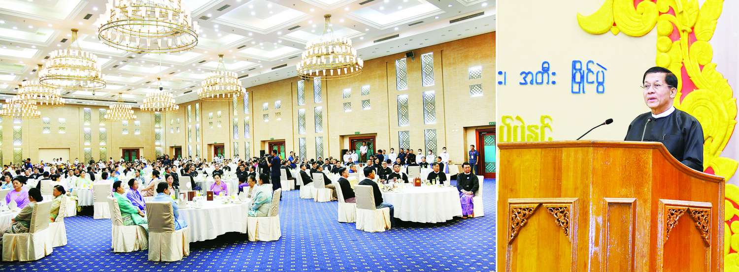 (၂၄) ကြိမ်မြောက် မြန်မာ့ရိုးရာယဉ်ကျေးမှု အဆို၊ အက၊ အရေး၊ အတီးပြိုင်ပွဲ ဂုဏ်ပြုမှတ်တမ်းလွှာပေးအပ်ပွဲနှင့် ဂုဏ်ပြုညစာစားပွဲအခမ်းအနားကို ယနေ့ညနေပိုင်းတွင် နေပြည်တော်ရှိ မြန်မာအပြည်ပြည်ဆိုင်ရာကွန်ဗင်းရှင်းဗဟိုဌာန-၂ (MICC-II) ၌ကျင်းပရာ နိုင်ငံတော်စီမံအုပ်ချုပ်ရေးကောင်စီဥက္ကဋ္ဌ နိုင်ငံတော်ဝန်ကြီးချုပ် ဗိုလ်ချုပ်မှူးကြီး မင်းအောင်လှိုင် တက်ရောက်ချီးမြှင့်သည်။