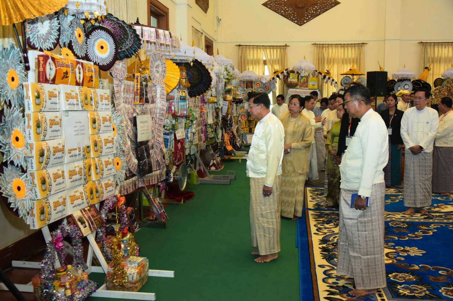 ထို့နောက် နိုင်ငံတော်စီမံအုပ်ချုပ်ရေးကောင်စီဥက္ကဋ္ဌ နိုင်ငံတော်ဝန်ကြီးချုပ်နှင့် အခမ်းအနားတက်ရောက်လာသည့် ဧည့်ပရိသတ်များသည် ကထိန်ခံ ဇမ္ဗူသီရိမြို့နယ်၊ မဟာဝိဇိတာရုံကျောင်းတိုက်သို့ လှူဒါန်းရန် ခင်းကျင်းပြင်ဆင်ထားသည့် ကထိန်လျာသင်္ကန်း၊ လှူဖွယ်ပစ္စည်းများနှင့် ပဒေသာပင်များအား လှည့်လည်ကြည့်ရှုကြသည်။