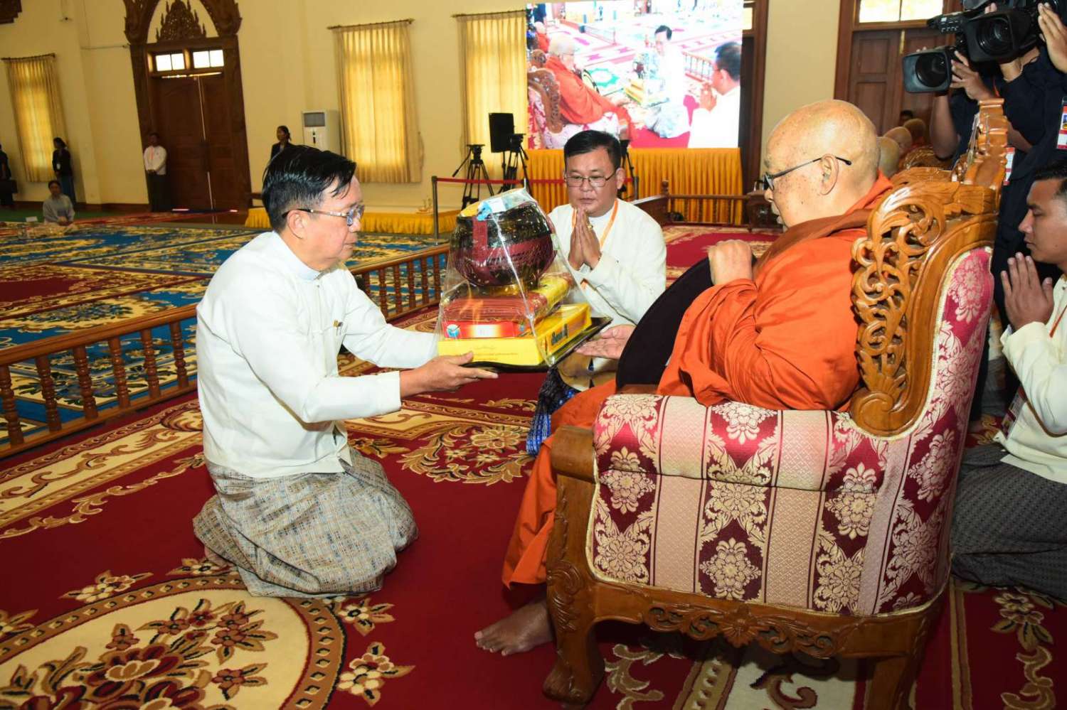ဆက်လက်ပြီး ကောင်စီအတွင်းရေးမှူး၊ တွဲဖက်အတွင်းရေးမှူးနှင့်ဇနီး၊ ကောင်စီဝင်များနှင့် ဇနီးများ၊ ပြည်ထောင်စုအဆင့်ပုဂ္ဂိုလ်များ၊ ပြည်ထောင်စုဝန်ကြီးများ၊ တပ်မတော်အရာရှိကြီးများက ဆရာတော်၊ သံဃာတော်များထံ ကထိန်သင်္ကန်းနှင့် လှူဖွယ်ပစ္စည်းများကိုလည်းကောင်း အသီးသီး ဆက်ကပ်လှူဒါန်းကြသည်။