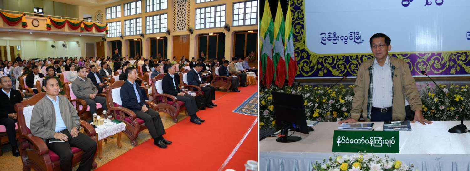 ဦးစွာ နိုင်ငံတော်စီမံအုပ်ချုပ်ရေးကောင်စီဥက္ကဋ္ဌ နိုင်ငံတော်ဝန်ကြီးချုပ်က အမှာစကားပြောကြားရာတွင် ပြင်ဦးလွင်ဒေသအတွင်း၌ ကော်ဖီနှင့် ဒေသထွက်ကုန်ပစ္စည်းများကိုအခြေခံသည့် အသေးစား၊ အငယ်စားနှင့် အလတ်စားစီးပွားရေး(MSME) လုပ်ငန်းများ ဖွံ့ဖြိုးတိုးတက်စေရေးအတွက် လိုအပ်သည်များကို ဆောင်ရွက်ပေးနိုင်ရန် ယခုကဲ့သို့တွေ့ဆုံရခြင်းဖြစ်ကြောင်း၊ ပြင်ဦးလွင်ဒေသကို ကော်ဖီဒေသဖြစ်စေရေးအတွက် ယခင်ကတည်းကပင် ကော်ဖီလုပ်ငန်းများဆောင်ရွက်နိုင်ရေး စီမံကိန်းမြေနေရာများ ဖော်ဆောင်ပေးခဲ့ကြောင်း၊ သို့သော်လည်း ကော်ဖီလုပ်ငန်းလုပ်ဆောင်ရန် မြေနေရာရယူထားသူများအနက် အမှန်တကယ်အင်ပြည့်အားပြည့် အကောင်အထည်ဖော် ဆောင်ရွက်နိုင်ခြင်းမရှိသူများကိုလည်း စိစစ်ဖော်ထုတ်သိရှိရကြောင်း၊ စီးပွားရေးလုပ်ငန်းရှင်များအနေဖြင့် အမှန်တကယ်အလုပ်လုပ်ရန်လိုသကဲ့သို့ အစိုးရတာဝန်ရှိသူများအနေဖြင့်လည်း လုပ်ဆောင်နိုင်ရန် အခွင့်အလမ်းများ ဖော်ဆောင်ပေးနိုင်ရန် လိုကြောင်း။