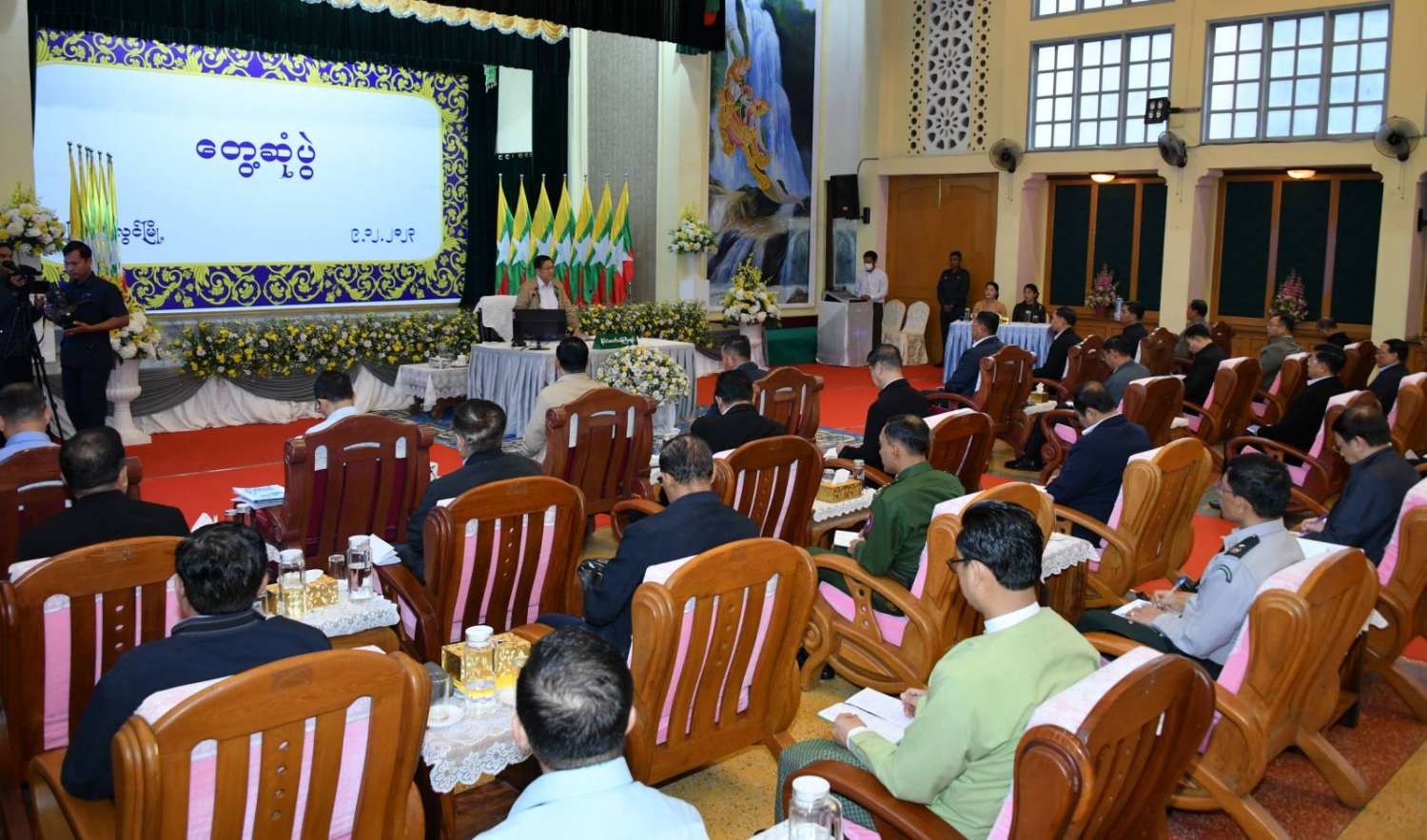 နိုင်ငံတော်စီမံအုပ်ချုပ်ရေးကောင်စီဥက္ကဋ္ဌ နိုင်ငံတော်ဝန်ကြီးချုပ် ဗိုလ်ချုပ်မှူးကြီး မင်းအောင်လှိုင်သည် ယနေ့နံနက်ပိုင်းတွင် မန္တလေးတိုင်းဒေသကြီး၊ ပြင်ဦးလွင်မြို့ရှိ ကော်ဖီလုပ်ငန်းရှင်များနှင့် အသေးစား၊ အငယ်စားနှင့် အလတ်စားစီးပွားရေး(MSME)လုပ်ငန်းရှင်များအား ပြင်ဦးလွင်မြို့၊ မြို့တော်ခန်းမ၌တွေ့ဆုံ၍ ကော်ဖီစိုက်ပျိုးမှုဆိုင်ရာများနှင့် ဒေသထုတ်ကုန်များ တိုးမြှင့်ထုတ်လုပ်နိုင်ရေးဆိုင်ရာများကို ဆွေးနွေးသည်။