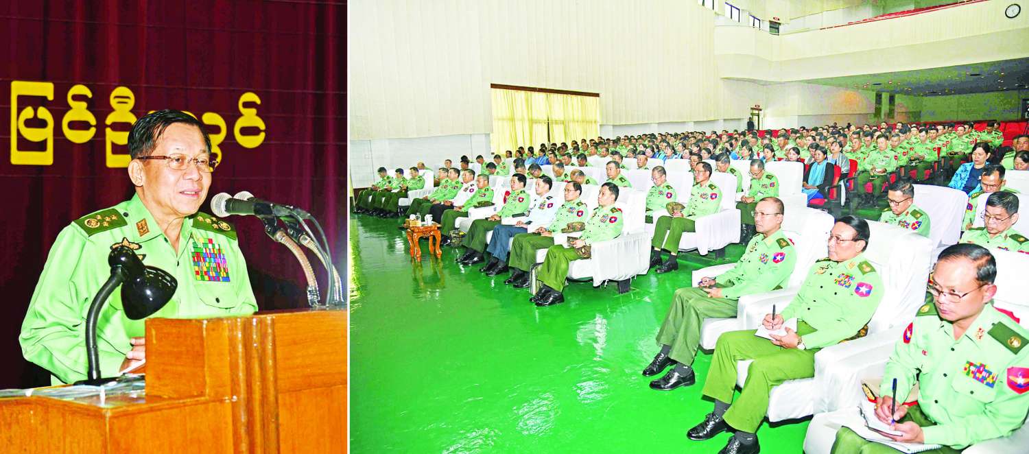 လေ့ကျင့်ရေးပိုင်းတွင် သေချာစွာ ဆောင်ရွက်ပေးရန်လိုကြောင်း၊ လေ့ကျင့်ရေးပိုင်းဆိုင်ရာများကို စနစ်တကျလေ့ကျင့်ပေးမှသာ စစ်မြေပြင်တွင် လုပ်ငန်းတာဝန်များကို ကျေပွန်စွာ ထမ်းဆောင်နိုင်မည်ဖြစ်ကြောင်း၊ အားကစားပြိုင်ပွဲများ ကျင်းပရာတွင် စဉ်းစားဉာဏ်ဖြင့် ခွန်အားစိုက်ထုတ်၍ စနစ်တကျဆောင်ရွက်တတ်သည့် အကျင့်ကောင်းများရရှိအောင် လေ့ကျင့်ပေးရမည်ဖြစ်ကြောင်း၊ စစ်ခေါင်းဆောင်များသည် စဉ်းစားဆင်ခြင်တုံတရားနှင့် သတ္တိရှိရှိဖြင့် ဆောင်ရွက်နိုင်ရေး စစ်တက္ကသိုလ်မှ မွေးထုတ်ပေးနေခြင်းဖြစ်ကြောင်း၊ ထို့ကြောင့်လေ့ကျင့် ခြင်းများ ဆောင်ရွက်ပေးရာတွင် သင်တန်းသားများအား အဆိုပါစိတ်ဓာတ်များ အခြေခံမှစတင်၍ မွေးမြူပေးနိုင်ရေး လေ့ကျင့်ပေးသွားရန်လိုကြောင်း၊ လေ့ကျင့်သားပြည့်ဝစွာဖြင့် လေ့ကျင့်ဆောင်ရွက်ပေးခြင်းဖြင့် တပ်မတော်အတွက် အားထားရသည့် စစ်ဘက်ခေါင်းဆောင်များကို မွေးထုတ်ပေးနိုင်မည်ဖြစ်သဖြင့် လက်ရုံးရည်၊ နှလုံးရည်နှင့် စဉ်းစားဆုံးဖြတ်နိုင်သည့် ခေါင်းဆောင်များ မွေးထုတ်ပေးနိုင်ရေးစနစ်တကျဖြင့် အလေးထားလေ့ကျင့် ဆောင်ရွက်ပေးသွားရန်လိုကြောင်း မှာကြားခဲ့ကြောင်း သတင်းရရှိသည်။