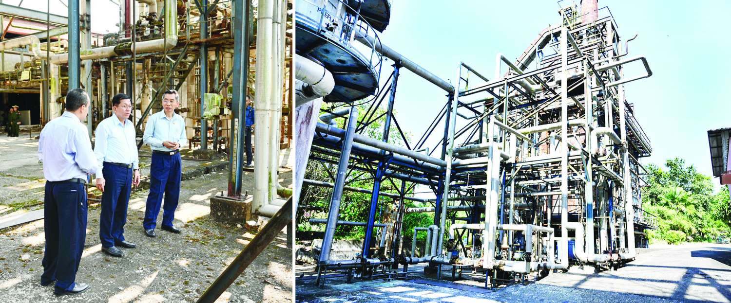 ယင်းနောက် နိုင်ငံတော်စီမံအုပ်ချုပ်ရေးကောင်စီဥက္ကဋ္ဌ နိုင်ငံတော်ဝန်ကြီးချုပ်နှင့် အဖွဲ့ဝင်များသည် အမှတ်(၁)ရေနံချက်စက်ရုံ(သန်လျင်)၊ စက်ရုံဝန်းအတွင်းရှိ ရေနံချက်စက်ရုံ(ခ)၊ ချောဆီစက်ရုံ၊ ရေနံဓာတ်ငွေ့ရည်သိုလှောင်ကန်တို့အား လိုက်လံကြည့်ရှုစစ်ဆေးပြီး တာဝန်ရှိသူများ၏ တင်ပြချက်များအပေါ် နိုင်ငံတော်စီမံအုပ်ချုပ်ရေးကောင်စီဥက္ကဋ္ဌ နိုင်ငံတော်ဝန်ကြီးချုပ်က ရေနံချက်စက်ရုံများအား အမြန်ဆုံးပြန်လည်လည်ပတ်နိုင်ရေး ကြိုးပမ်းဆောင်ရွက်၍ ပြည်တွင်း စက်သုံးဆီ လိုအပ်ချက်အားတစ်ဖက်တစ်လမ်းမှ ဖြည့်ဆည်းပေးနိုင်ရန်မှာကြားကာ လိုအပ်သည်များ ဖြည့်ဆည်းဆောင်ရွက်ပေးသည်။