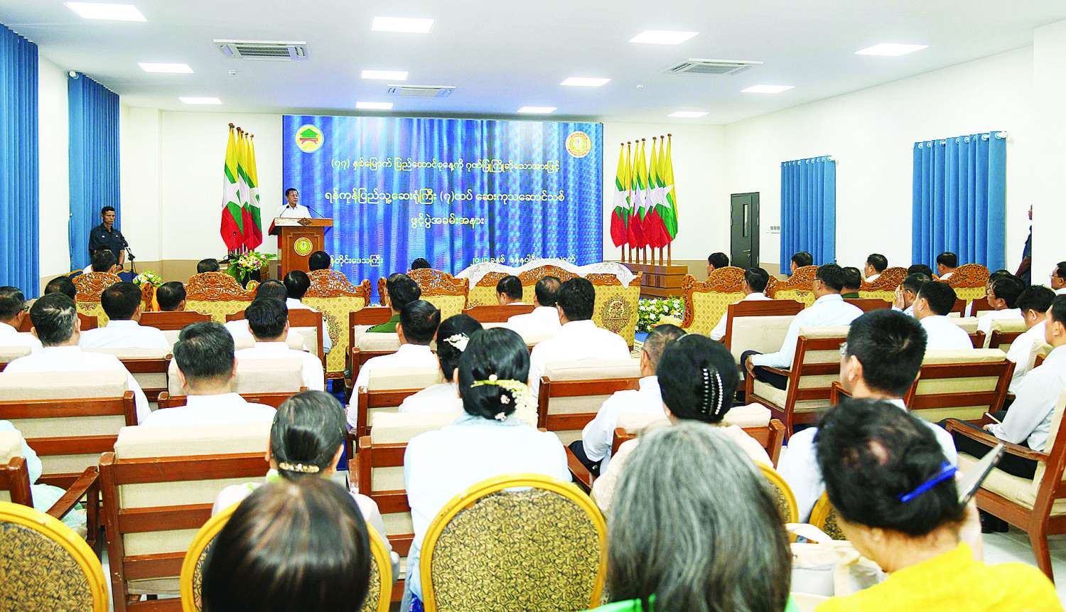 ယခု(၇)ထပ်ဆေးကုသဆောင်သစ်ကြီးကို ၂၀၁၅ ခုနှစ်က စတင်ဆောက်လုပ်ခဲ့ခြင်းဖြစ်ပြီး အကြောင်းအမျိုးမျိုးကြောင့် ကြန့်ကြာခဲ့ရပါကြောင်း၊ နိုင်ငံတော်စီမံအုပ်ချုပ်ရေးကောင်စီတာဝန်ယူစဉ်ကာလအတွင်း ပြည်သူများအကောင်းဆုံး ကျန်းမာရေးစောင့်ရှောက်မှု ရရှိစေရန်ရည်ရွယ်ပြီး ဆေးရုံဆောက်လုပ်ခြင်းကို ပြီးစီးအောင် တစ်စိုက်မတ်မတ် ဆက်လက်တည်ဆောက်ပေးသည့်အတွက် ယနေ့တွင်(၇၇)နှစ်မြောက် ပြည်ထောင်စုနေ့ကို ကြိုဆိုဂုဏ်ပြုသောအားဖြင့် ဖွင့်လှစ်နိုင်ခဲ့ပြီဖြစ်ပါကြောင်း၊ အခက်အခဲအမျိုးမျိုးဖြင့် ကြန့်ကြာနေသည့်(၇)ထပ်ဆေးရုံသစ်ကြီး တည်ဆောက်ရေးလုပ်ငန်းများ အမြန်ပြီးစီးအောင် ကြိုးပမ်းတည်ဆောက်ပေးခဲ့သည့် ဆောက်လုပ်ရေးဝန်ကြီးဌာန ပြည်သူ့ဆောက်လုပ်ရေးလုပ်ငန်းနှင့် စိတ်ရောကိုယ်ပါ ကူညီဆောင်ရွက်ပေးကြသည့်ဌာန အသီးသီးကတာဝန်ရှိသူများကိုလည်း ချီးကျူးဂုဏ်ပြုပါကြောင်း၊ ယခုကဲ့သို့ နိုင်ငံတော်ဘဏ္ဍာငွေအမြောက်အမြား အကုန်အကျခံတည်ဆောက်ထားသည့် (၇)ထပ်ကုသဆောင် သစ်ကြီးအတွင်း၌ နိုင်ငံတကာအဆင့်မီ ဆေးကုသမှုခံစားရရှိနိုင်ရန် အဆင့်မြင့်ရောဂါ ရှာဖွေကုသရေးဆိုင်ရာ စက်ပစ္စည်းကိရိယာများ ဖြည့်ဆည်းထားသည့် ဓာတ်ခွဲခန်းများ၊ ပုံရိပ်ဖော်နည်းပညာဆိုင်ရာ ဓာတ်မှန်ဌာန၊ သွေးရောဂါလူနာဌာန၊ ရိုးတွင်းချဉ်ဆီ လဲလှယ်ကုသဌာနတို့ပါဝင်ပြီး ပြည်သူများအနေဖြင့် နိုင်ငံတကာစံနှုန်းနှင့်အညီ နည်းပညာအဆင့်မြင့်မားသည့် ကုသမှုများကို ပိုမိုရရှိနိုင်တော့မည် ဖြစ်ပါကြောင်း။