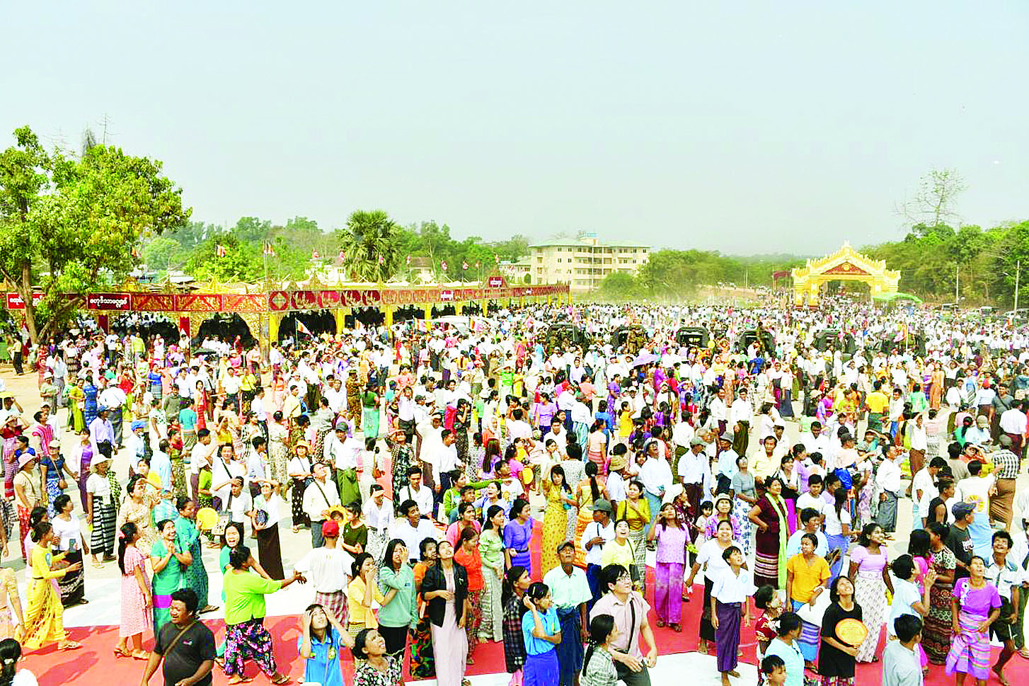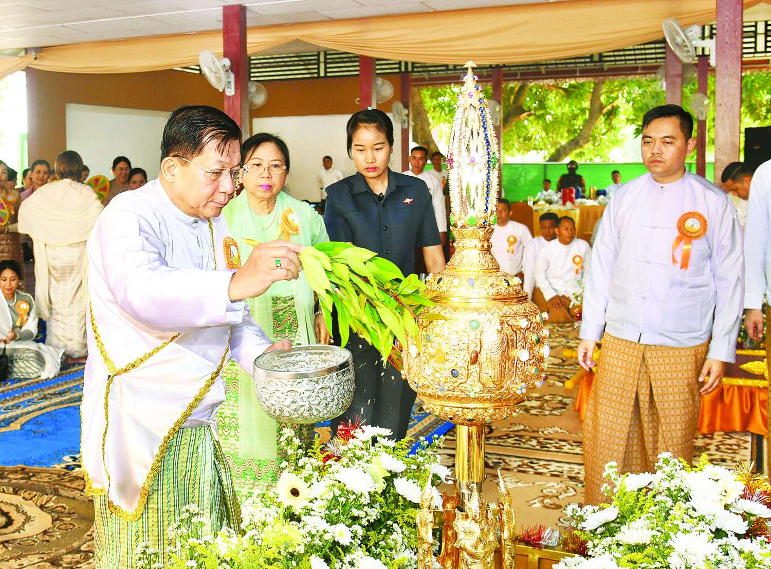 အဆိုပါ အခမ်းအနားသို့ နိုင်ငံတော်စီမံအုပ်ချုပ်ရေးကောင်စီဥက္ကဋ္ဌ နိုင်ငံတော်ဝန်ကြီးချုပ် ဗိုလ်ချုပ်မှူးကြီး မင်းအောင်လှိုင်၊ ဇနီး ဒေါ်ကြူကြူလှနှင့် မိသားစုဝင်များ၊ ကောင်စီတွဲဖက်အတွင်းရေးမှူး ဒုတိယဗိုလ်ချုပ်ကြီး ရဲဝင်းဦးနှင့် ဇနီး၊ နိုင်ငံတော်စီမံအုပ်ချုပ်ရေးကောင်စီဝင်များဖြစ်ကြသည့် ဗိုလ်ချုပ်ကြီး မြထွန်းဦးနှင့်ဇနီး၊ ဒုတိယဗိုလ်ချုပ်ကြီး ညိုစောနှင့်ဇနီး၊ ပြည်ထောင်စုဝန်ကြီးများနှင့် ဇနီးများ၊ ရန်ကုန်တိုင်းဒေသကြီးဝန်ကြီးချုပ်၊ ပဲခူးတိုင်းဒေသကြီး ဝန်ကြီးချုပ်၊ ကာကွယ်ရေးဦးစီးချုပ်ရုံးမှ အဆင့်မြင့်တပ်မတော်အရာရှိကြီးများနှင့် ဇနီးများ၊ ရန်ကုန်တိုင်းစစ်ဌာနချုပ်တိုင်းမှူး၊ တောင်ပိုင်းတိုင်းစစ်ဌာနချုပ်တိုင်းမှူး၊ ပဲခူးတိုင်းဒေသကြီးအစိုးရအဖွဲ့မှ တာဝန်ရှိသူများ၊ ဌာနဆိုင်ရာများ၊ ဖိတ်ကြားထားသည့် ဧည့်သည်တော်များ၊ စေတနာရှင်အလှူရှင်များ၊ ဝတ်အသင်းအဖွဲ့များနှင့် ဒေသခံတိုင်းရင်းသား ပြည်သူများ စည်ကားသိုက်မြိုက်စွာ တက်ရောက်ကြသည်။