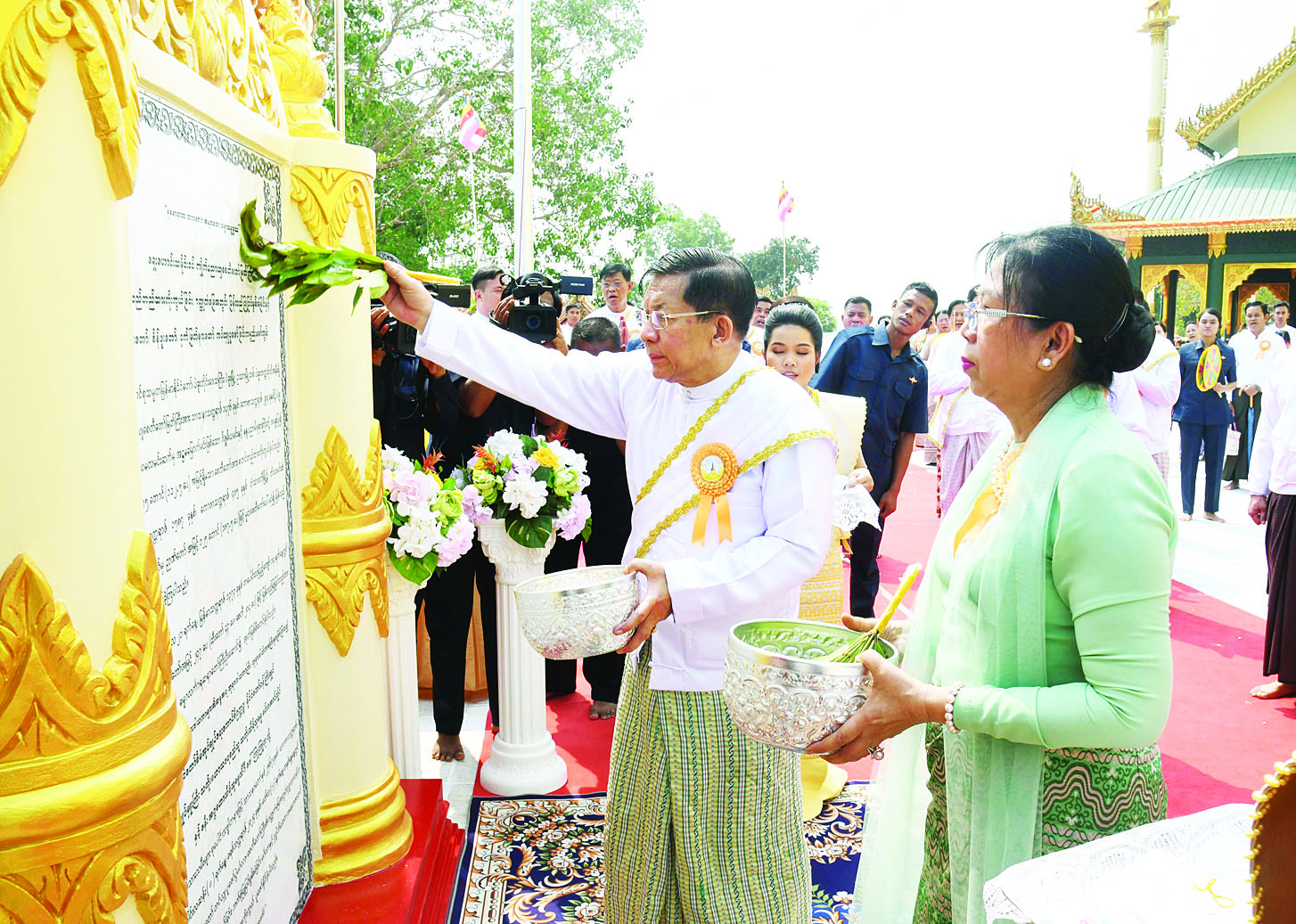 ထို့နောက် နိုင်ငံတော်စီမံအုပ်ချုပ်ရေးကောင်စီဥက္ကဋ္ဌ နိုင်ငံတော်ဝန်ကြီးချုပ်နှင့် ဇနီးတို့သည် ရှေးဟောင်းသမိုင်းဝင် ကျိုက်ပညာယျစေတီတော်မြတ်ကြီး ရတနာစိန်ဖူးတော်၊ ငှက်မြတ်နားတော်တင်လှူပူဇော်ပွဲနှင့် ဗုဒ္ဓါဘိသေကအနေကဇာတင် မဟာမင်္ဂလာအခမ်းအနားများ အောင်မြင်စွာကျင်းပနိုင်ရေးအတွက် ဆောင်ရွက်ခဲ့ကြသည့် အထောက်အကူပြုအဖွဲ့များနှင့် ပရဟိတအသင်းအဖွဲ့များအား ချီးမြှင့်ငွေများ ပေးအပ်ချီးမြှင့်သည်။