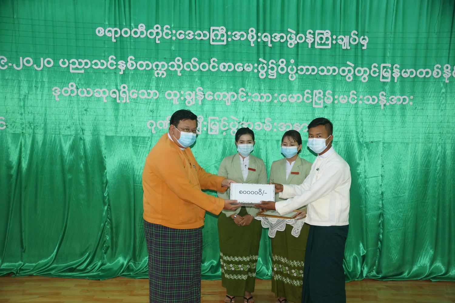 အခမ်းအနားတွင် ဧရာဝတီတိုင်းဒေသကြီး အစိုးရအဖွဲ့ ဝန်ကြီးချုပ် ဦးလှမိုးအောင်က အမှာစကားပြောကြားပြီး ၂၀၁၉-၂၀၂၀ ပညာသင်နှစ် တက္ကသိုလ်ဝင်စာမေးပွဲတွင် ဝိပ္ပံ ဘာသာတွဲ၌ မြန်မာတစ်နိုင်ငံလုံး ဒုတိယဆုရရှိသော ထူးချွန်ကျောင်းသား မောင်ငြိမ်းမင်းသန့်အား ဂုဏ်ပြုချီးမြှင့်ငွေကျပ် ရှစ်သိန်းနှင့် ဂုဏ်ပြုမှတ် လက်မှတ် ချီးမြှင့်ပေးသည်။