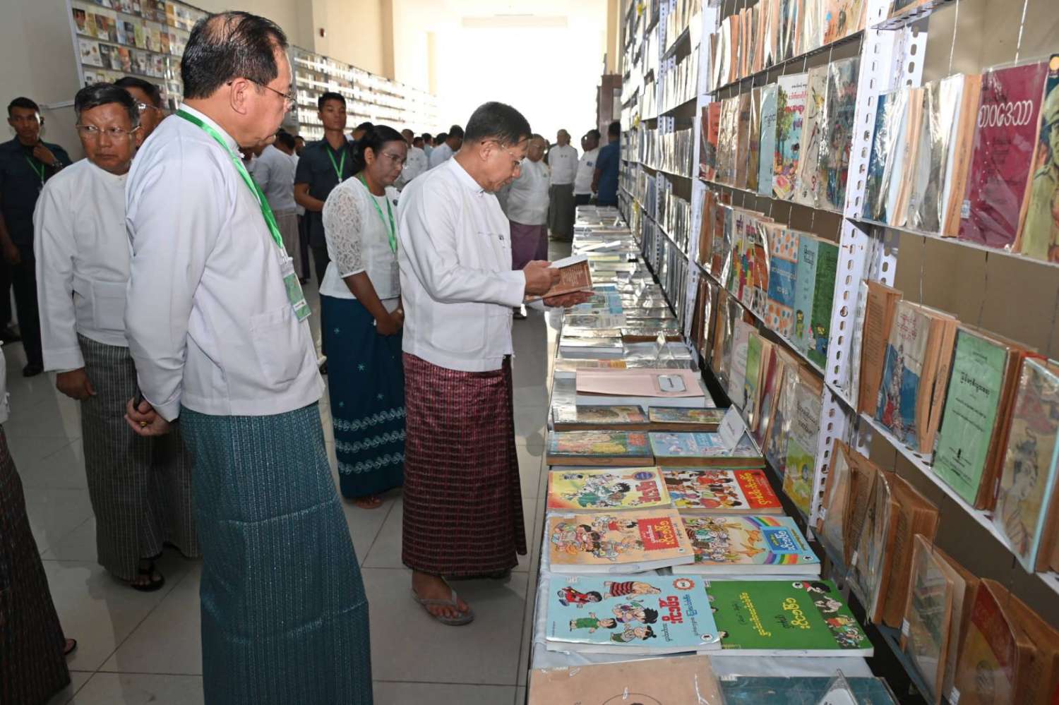မြန်မာနိုင်ငံတစ်ဝန်းလုံးရှိ စာကြည့်တိုက်များ ဖွံ့ဖြိုးတိုးတက်ရေးအတွက် အလှူငွေနှင့် စာအုပ်စာစောင်များ ပေးအပ်လှူဒါန်းပွဲအခမ်းအနားကို ယနေ့နံနက်ပိုင်းတွင် နေပြည်တော်ရှိ အမျိုးသားစာကြည့်တိုက်၌ ကျင်းပပြုလုပ်ရာ နိုင်ငံတော်စီမံအုပ်ချုပ်ရေးကောင်စီဥက္ကဋ္ဌ နိုင်ငံတော်ဝန်ကြီးချုပ် ဗိုလ်ချုပ်မှူးကြီး မင်းအောင်လှိုင် တက်ရောက်သည်။