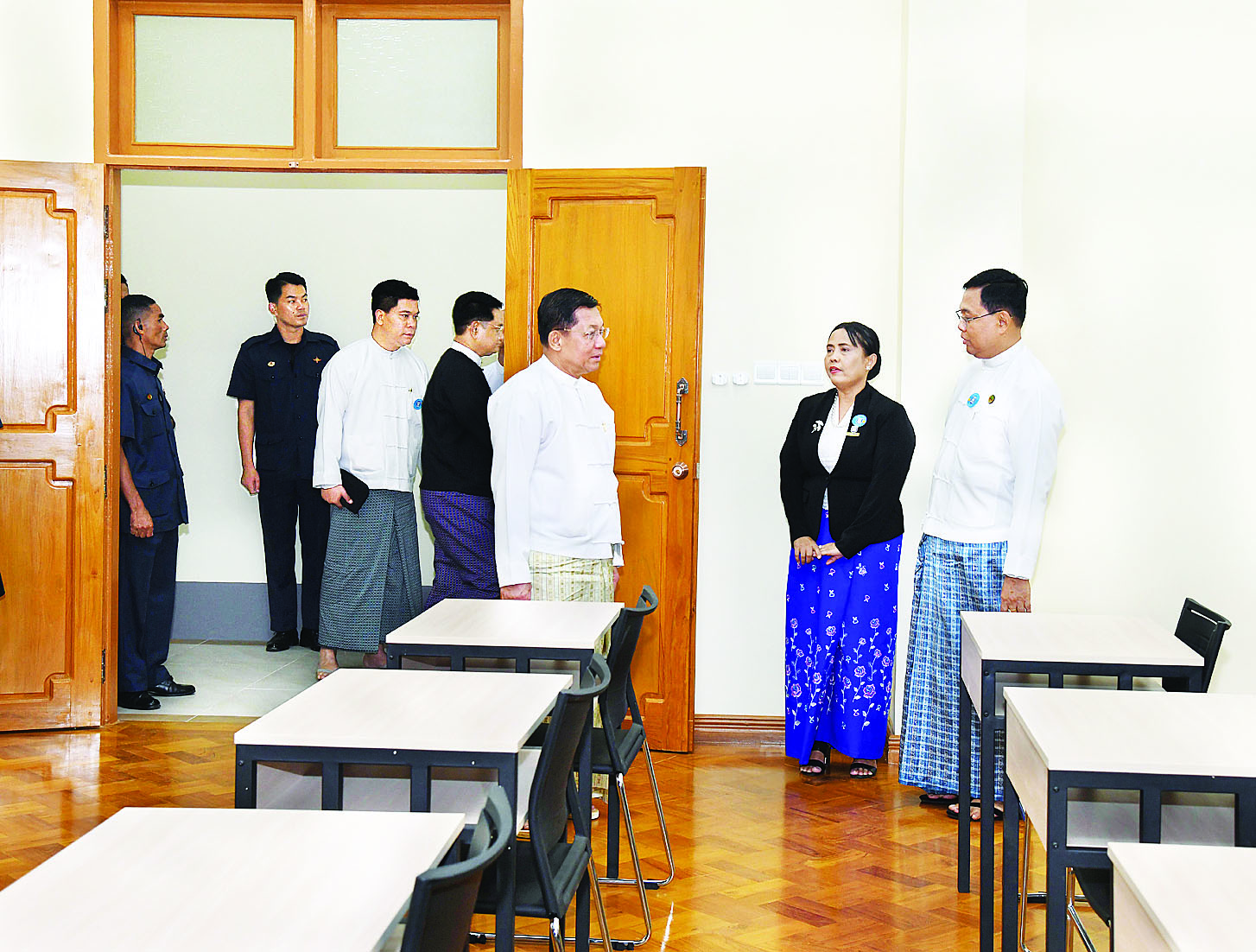 ထို့နောက် နိုင်ငံတော်စီမံအုပ်ချုပ်ရေးကောင်စီဥက္ကဋ္ဌ နိုင်ငံတော်ဝန်ကြီးချုပ်နှင့် အခမ်းအနားတက်ရောက်လာကြသူများသည် သင်တန်းကျောင်းအတွင်း လှည့်လည်ကြည့်ရှုခဲ့ကြကြောင်း သတင်းရရှိသည်။