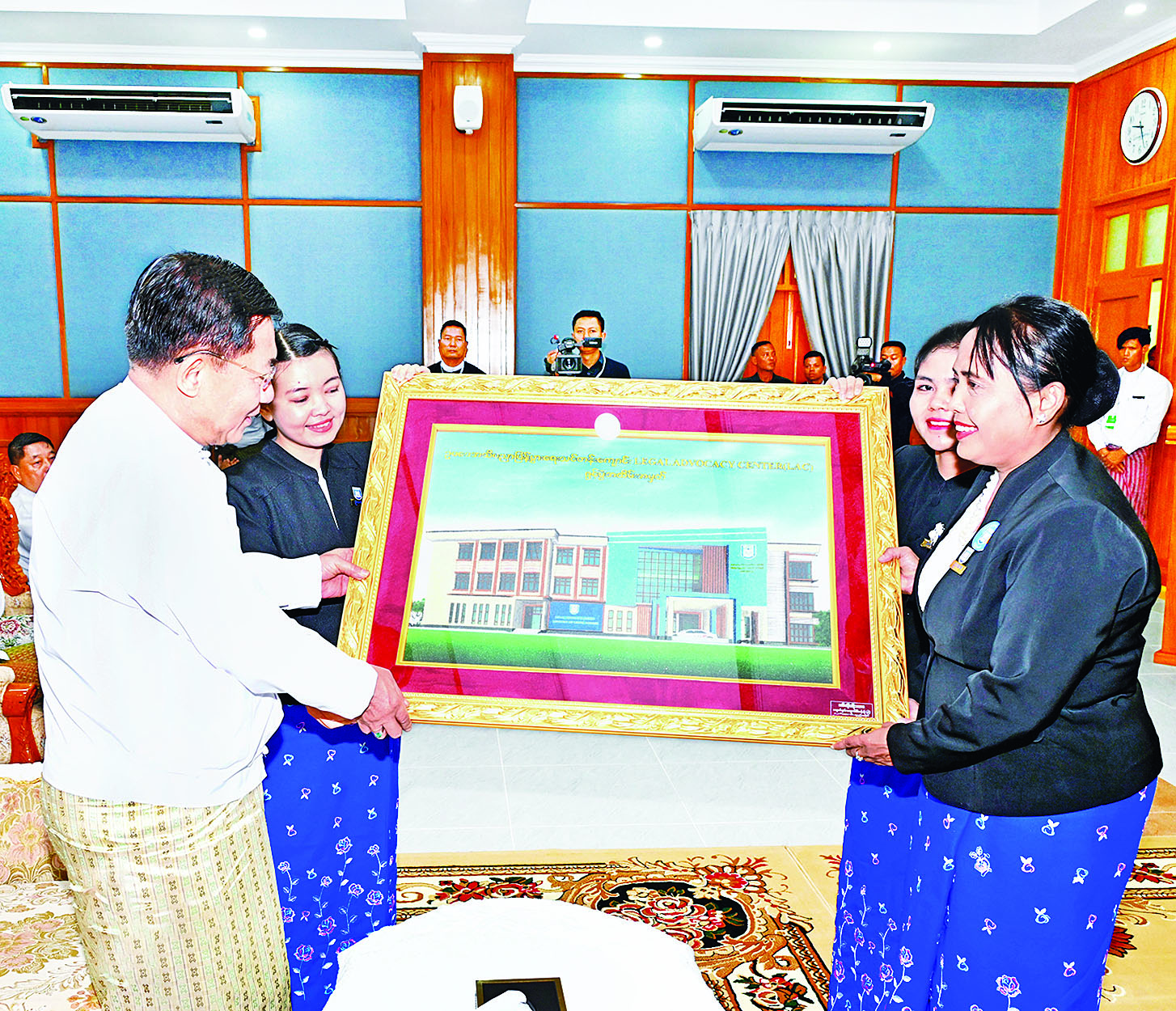 ထို့နောက် ဥပဒေရေးရာဝန်ကြီးဌာန ပြည်ထောင်စုဝန်ကြီးနှင့် ပြည်ထောင်စုရှေ့နေချုပ်က ဥပဒေအသိပညာ ပြန့်ပွားရေးသင်တန်းကျောင်းဖွင့်ပွဲအထိမ်းအမှတ် လက်ဆောင်အား နိုင်ငံတော်စီမံအုပ်ချုပ်ရေးကောင်စီဥက္ကဋ္ဌ နိုင်ငံတော်ဝန်ကြီးချုပ်ထံ ဂါရဝပြုပေးအပ်သည်။