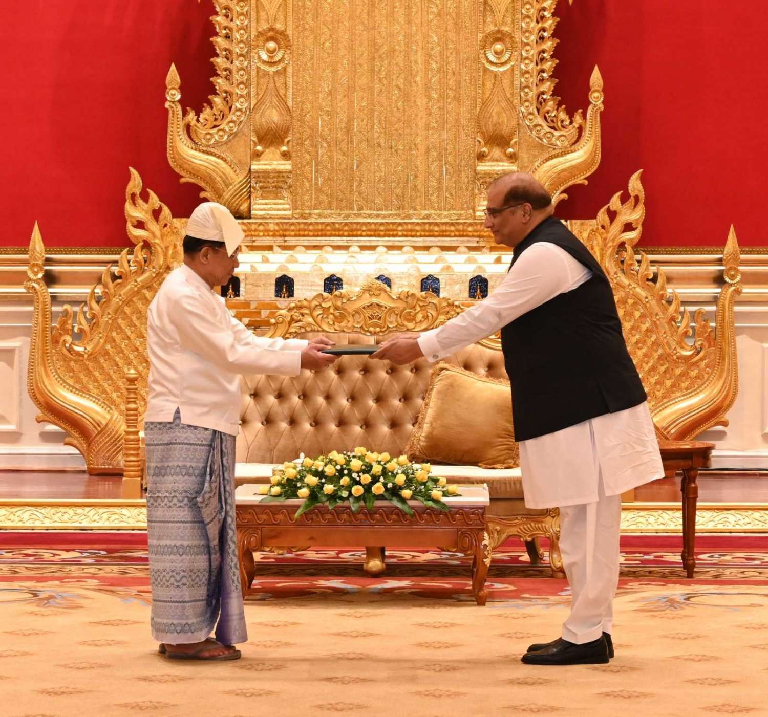 နိုင်ငံတော်စီမံအုပ်ချုပ်ရေးကောင်စီဥက္ကဋ္ဌ နိုင်ငံတော်ဝန်ကြီးချုပ် ဗိုလ်ချုပ်မှူးကြီး မင်းအောင်လှိုင်ထံ မြန်မာနိုင်ငံဆိုင်ရာ ပါကစ္စတန်နိုင်ငံသံအမတ်ကြီးအဖြစ် ခန့်အပ်ရန် သဘောတူညီပြီးဖြစ်သော သံအမတ်ကြီး H.E. Mr. Imran Haider သည် ယနေ့နံနက် ၁၀ နာရီတွင် နေပြည်တော်ရှိ နိုင်ငံတော်စီမံအုပ်ချုပ်ရေးကောင်စီဥက္ကဋ္ဌရုံး၊ သံတမန်ဆောင်ဧည့်ခန်းမ၌ ၎င်း၏သံအမတ်ခန့်အပ်လွှာကို ပေးအပ်သည်။