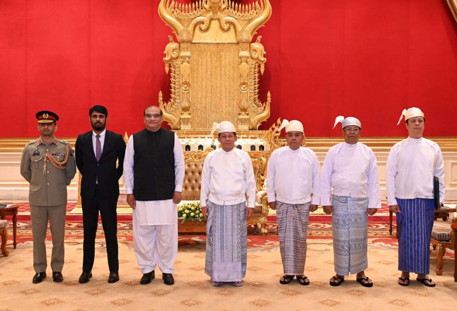 တွေ့ဆုံပွဲအပြီးတွင် နိုင်ငံတော်စီမံအုပ်ချုပ်ရေးကောင်စီဥက္ကဋ္ဌ နိုင်ငံတော်ဝန်ကြီးချုပ်နှင့် မြန်မာနိုင်ငံဆိုင်ရာ ပါကစ္စတန်နိုင်ငံသံအမတ်ကြီးတို့သည် စုပေါင်းမှတ်တမ်းတင်ဓာတ်ပုံရိုက်ကြသည်။