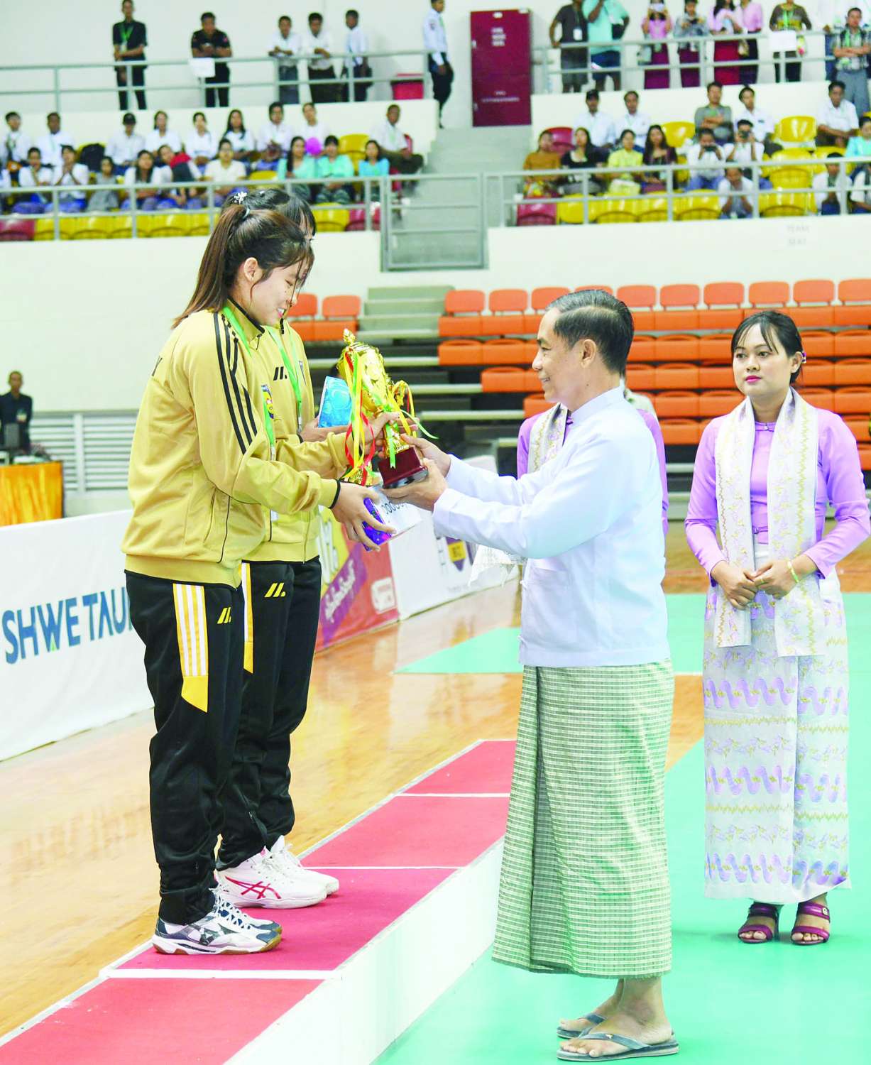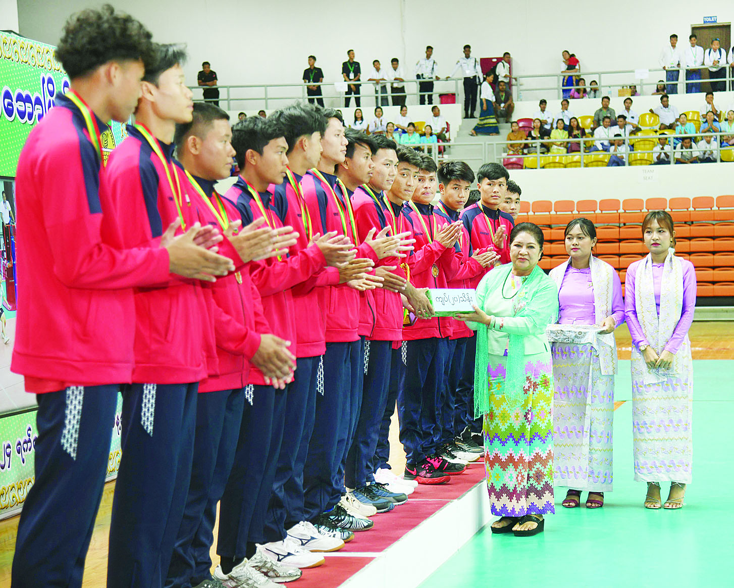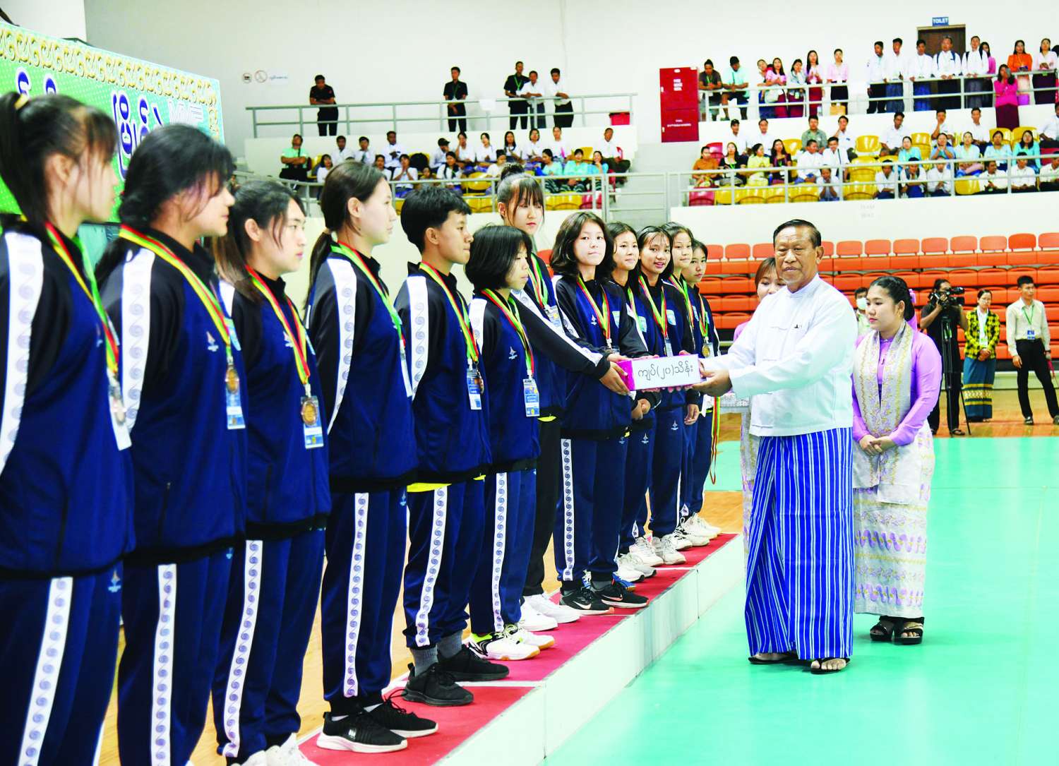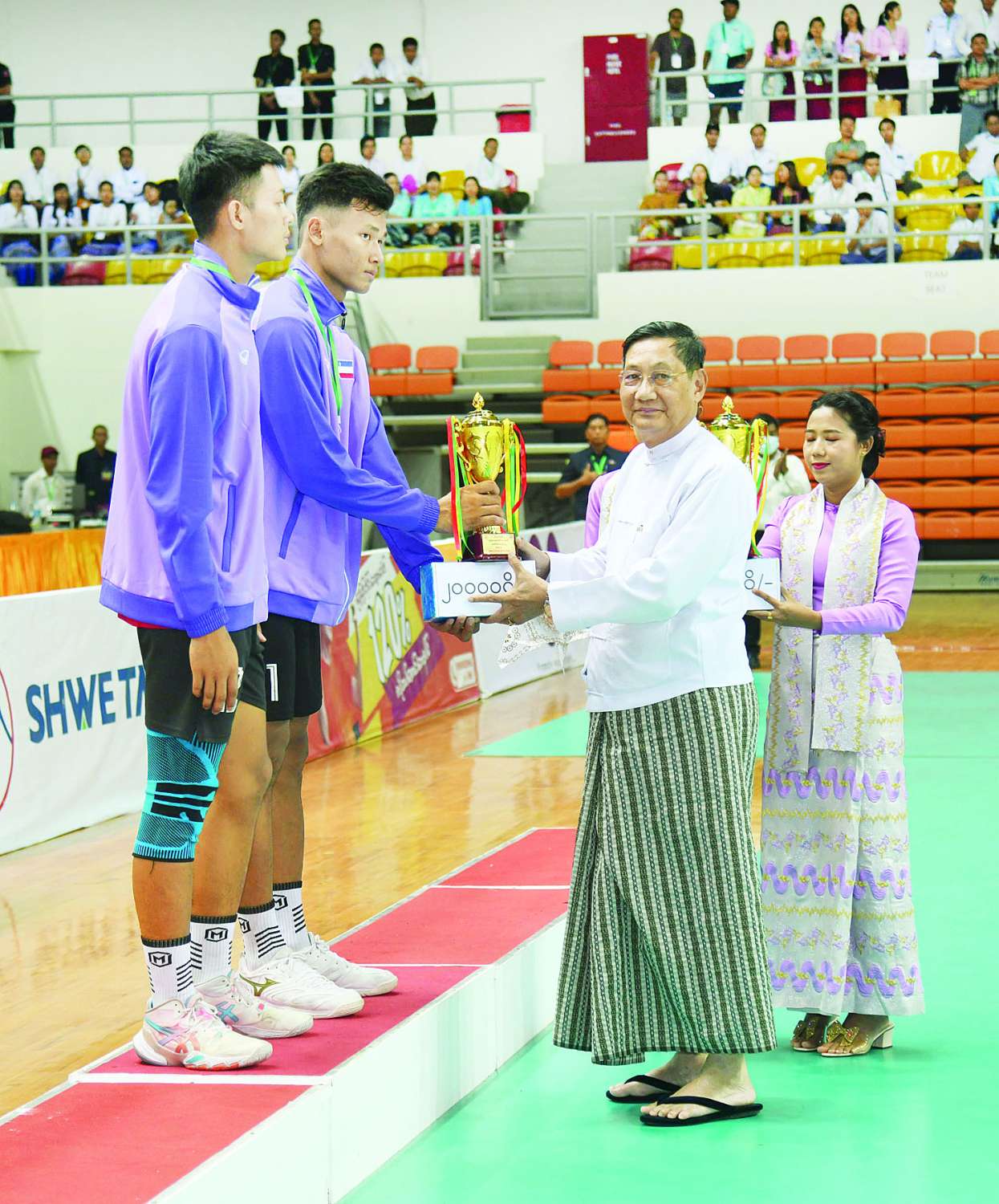 ယင်းနောက် ဘော်လီဘော(အမျိုးသမီး) ပြိုင်ပွဲတွင် ပထမဆုရရှိသည့် မန္တလေးတိုင်းဒေသကြီးအသင်းနှင့် ဘော်လီဘော(အမျိုးသား)ပြိုင်ပွဲတွင် ပထမဆုရရှိသည့် ရှမ်းပြည်နယ်အသင်းအား ကောင်စီတွဲဖက်အတွင်းရေးမှူး ဒုတိယဗိုလ်ချုပ်ကြီး ရဲဝင်းဦးက တစ်ဦးချင်းဆုတံဆိပ်များကို ပေးအပ်ချီးမြှင့်သည်။