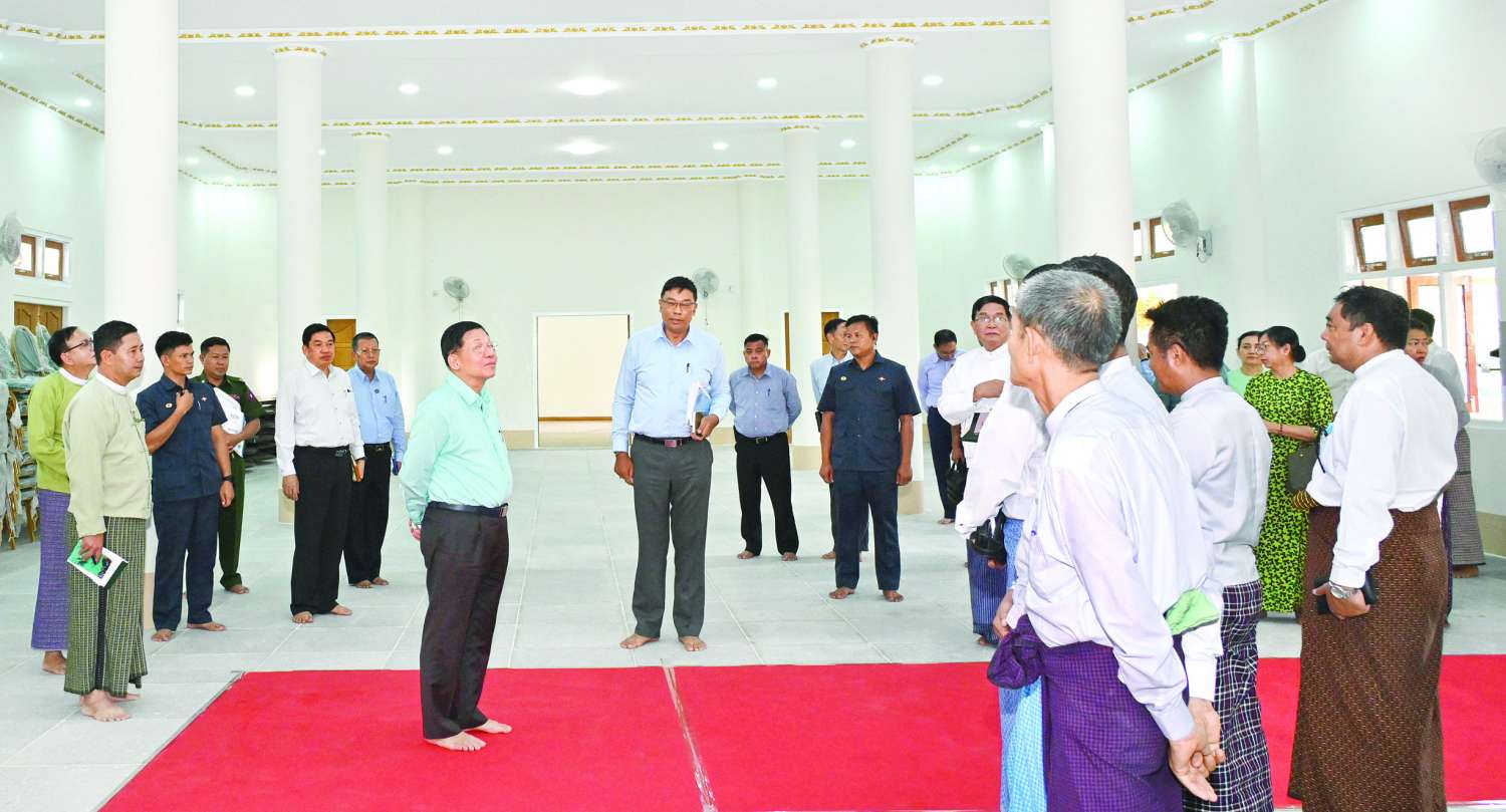 ယင်းနောက် နိုင်ငံတော်စီမံအုပ်ချုပ်ရေးကောင်စီဥက္ကဋ္ဌ နိုင်ငံတော်ဝန်ကြီးချုပ်နှင့် ဇနီး ဒေါ်ကြူကြူလှတို့သည် အဖွဲ့ဝင်များလိုက်ပါ၍ မကွေးတိုင်းဒေသကြီး၊ မင်းဘူးမြို့၊ သာသနာ့ဗိမာန်တော်ဆောက်လုပ်နေမှုအခြေအနေများကို သွားရောက်ကြည့်ရှုစစ်ဆေးသည်။ ဦးစွာ နိုင်ငံတော်စီမံအုပ်ချုပ်ရေးကောင်စီဥက္ကဋ္ဌ နိုင်ငံတော်ဝန်ကြီးချုပ်နှင့် ဇနီး၊ အဖွဲ့ဝင်များသည် သာသနာ့ဗိမာန်တော်အတွင်း လှည့်လည်ကြည့်ရှုကြပြီး ဗိမာန်တော်အပေါ်ထပ်ရှိ ခန်းမဆောင်၌ စစ်အင်ဂျင်နီယာညွှန်ကြားရေးမှူးရုံး၊ ညွှန်ကြားရေးမှူး ဗိုလ်ချုပ်ဇော်နိုင်ဦးက သာသနာ့ဗိမာန်ဆိုင်ရာအချက်အလက်များနှင့် လုပ်ငန်းဆောင်ရွက်လျက်ရှိသည့် အခြေအနေများကို ရှင်းလင်းတင်ပြရာ နိုင်ငံတော်စီမံအုပ်ချုပ်ရေးကောင်စီဥက္ကဋ္ဌ နိုင်ငံတော်ဝန်ကြီးချုပ်က လိုအပ်သည်များ မှာကြားသည်။