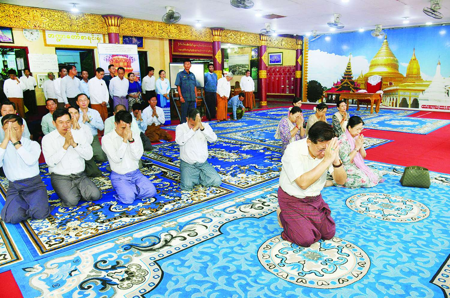 ဦးစွာ နိုင်ငံတော်စီမံအုပ်ချုပ်ရေးကောင်စီဥက္ကဋ္ဌ နိုင်ငံတော်ဝန်ကြီးချုပ်နှင့် ဇနီး၊ အဖွဲ့ဝင်များသည် အနော်ရထာမင်းကြီးနှင့် ကျန်စစ်သားမင်းကြီးတို့ တည်ထားကိုးကွယ်တော်မူခဲ့သည့် ရွှေစည်းခုံစေတီတော်မြတ်ကြီးသို့ ရောက်ရှိကြရာ ဂေါပကအဖွဲ့ဝင်များနှင့် တာဝန်ရှိသူများက ကြိုဆိုနှုတ်ဆက်ကြသည်။ ထို့နောက် စေတီတော်မြတ်ကြီးအား ဖူးမြော်ကြည်ညိုကာ ပန်း၊ ရေချမ်း၊ ဆီမီးကပ်လှူပူဇော်ပြီး ဘက်စုံအလှူတော်ငွေများကို ပေးအပ်လှူဒါန်းရာ ဂေါပကအဖွဲ့မှ တာဝန်ရှိသူများက လက်ခံရယူပြီး ဓမ္မလက်ဆောင်ပြန်လည်ပေးအပ်သည်။