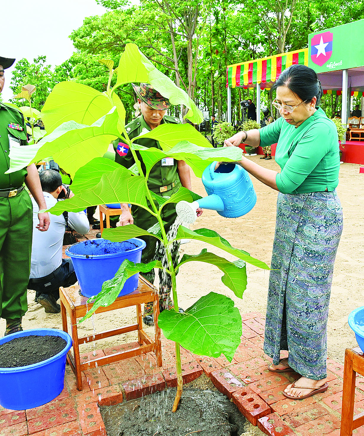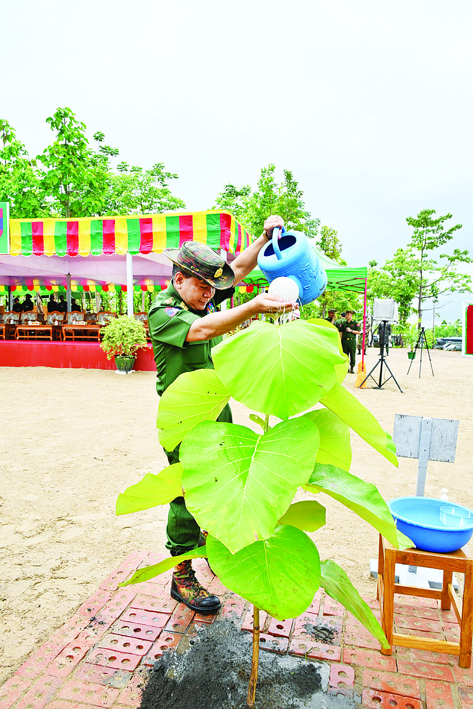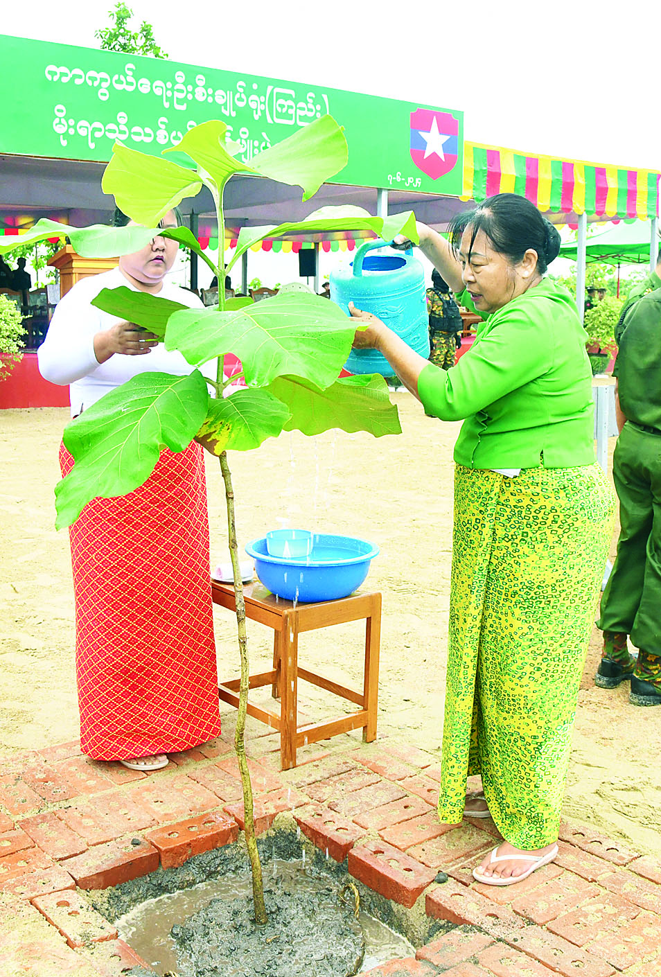 ထို့နောက် နိုင်ငံတော်စီမံအုပ်ချုပ်ရေးကောင်စီဥက္ကဋ္ဌ တပ်မတော်ကာကွယ်ရေးဦးစီးချုပ်နှင့် ဇနီးတို့က ရတနာတန်းဝင်ကျွန်းပင်ကို ဦးဆောင်စိုက်ပျိုးပေးကြသည်။ ဆက်လက်ပြီး နိုင်ငံတော်စီမံအုပ်ချုပ်ရေးကောင်စီ ဒုတိယဥက္ကဋ္ဌ ဒုတိယတပ်မတော်ကာကွယ်ရေးဦးစီးချုပ် ကာကွယ်ရေးဦးစီးချုပ်(ကြည်း) နှင့် ဇနီး၊ ညှိနှိုင်းကွပ်ကဲရေးမှူး (ကြည်း၊ ရေ၊ လေ)နှင့် ဇနီး၊ ကာကွယ်ရေးဦးစီးချုပ် (ရေ)နှင့် ဇနီး၊ ကာကွယ်ရေးဦးစီးချုပ် (လေ)၊ ကာကွယ်ရေးဦးစီးချုပ်ရုံးမှ တပ်မတော်အရာရှိကြီးများနှင့် ဇနီးများ၊ အခမ်းအနားတက်ရောက်လာကြသည့် အရာရှိ၊ စစ်သည်မိသားစုများက သတ်မှတ်နေရာအသီးသီးတွင် သစ်ပင်များကို စိုက်ပျိုးကြသည်။ ယင်းနောက် နိုင်ငံတော်စီမံအုပ်ချုပ်ရေးကောင်စီဥက္ကဋ္ဌ တပ်မတော်ကာကွယ်ရေးဦးစီးချုပ်နှင့် ဇနီး၊ အဖွဲ့ဝင်များသည် အရာရှိ၊ စစ်သည်မိသားစုများ၏ စုပေါင်းသစ်ပင်စိုက်ပျိုးနေမှုအား လှည့်လည်ကြည့်ရှုအားပေးကြသည်။