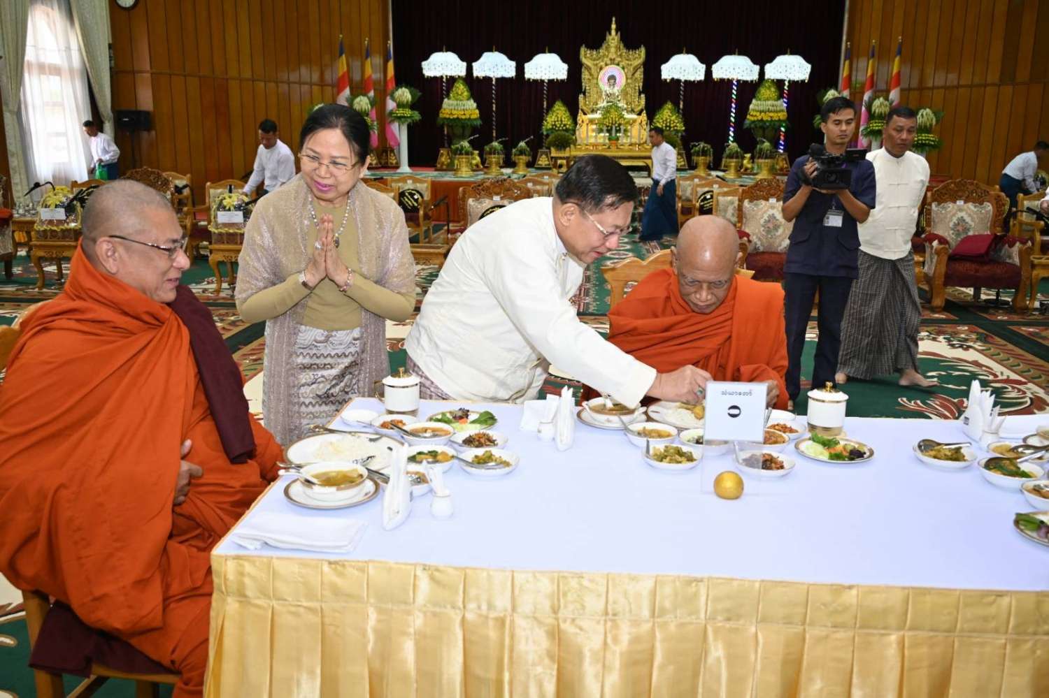 ဦးစွာ နိုင်ငံတော်စီမံအုပ်ချုပ်ရေးကောင်စီဥက္ကဋ္ဌ တပ်မတော်ကာကွယ်ရေးဦးစီးချုပ်က အနော်ရထာခန်းမအတွင်းရှိ ဗုဒ္ဓရုပ်ပွားတော်မြတ်အား ဖူးမြော်ကြည်ညို၍ မြသပိတ်ဆွမ်းတော်၊ သစ်သီး၊ ပန်း၊ သောက်တော်ရေချမ်းနှင့် ဆီမီးတို့ကို ကပ်လှူပူဇော်သည်။