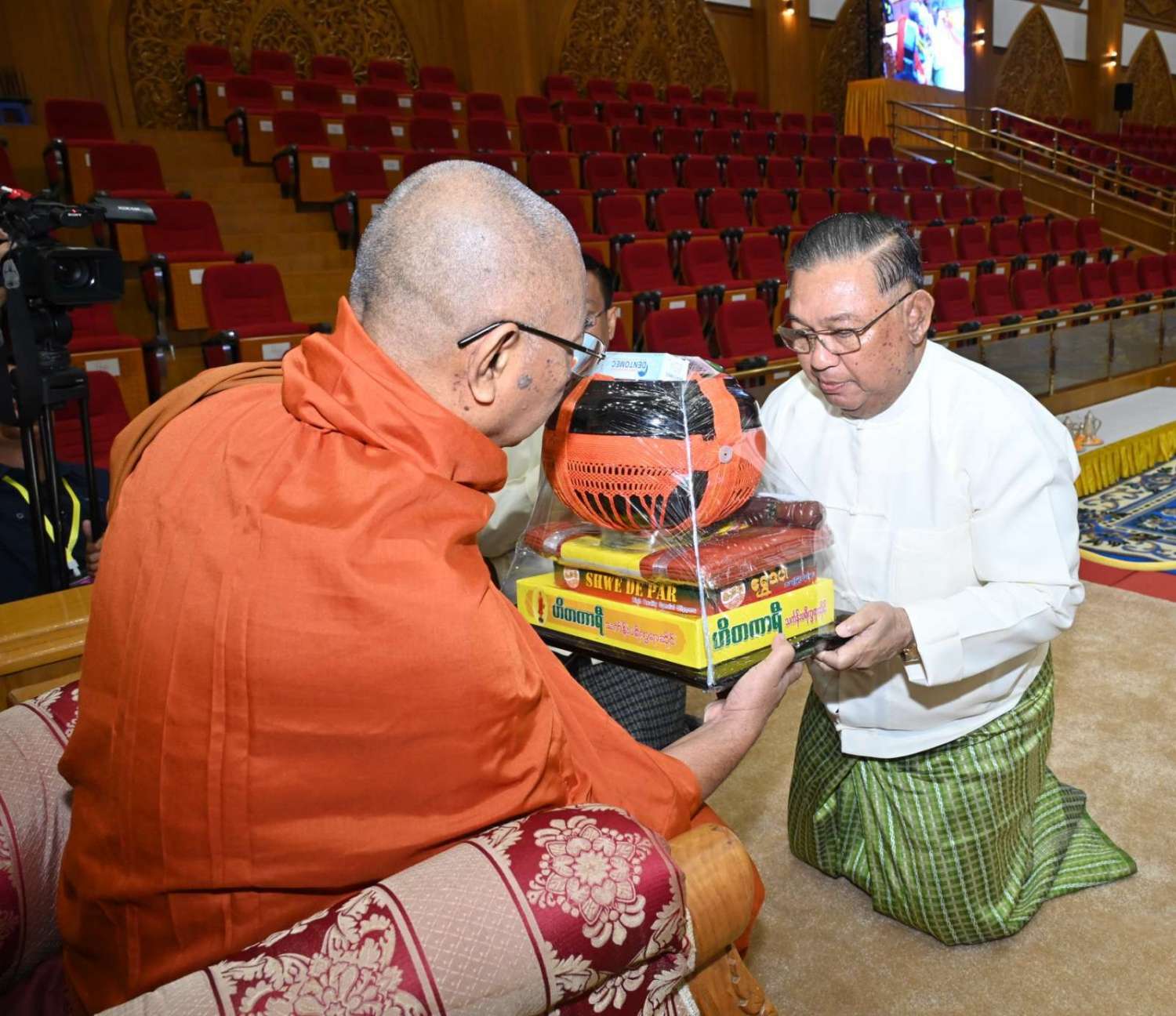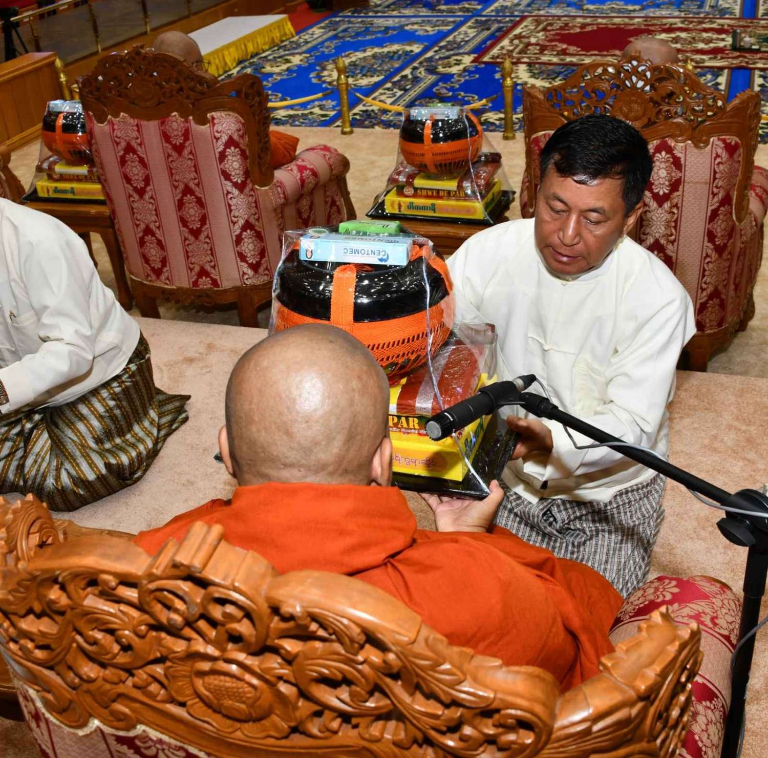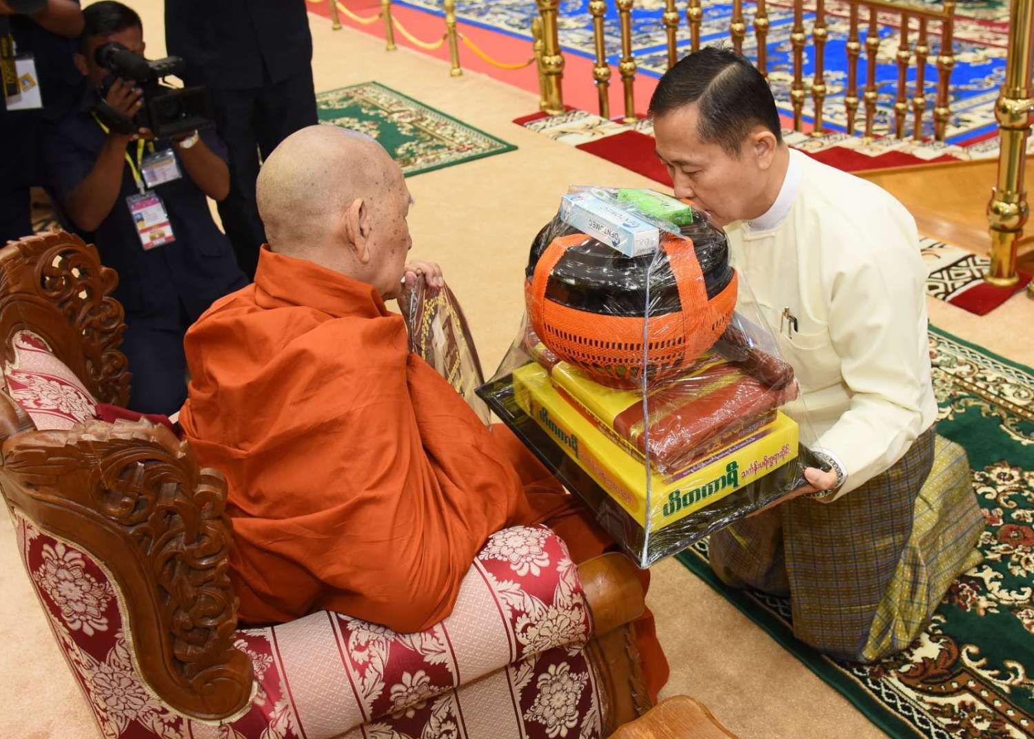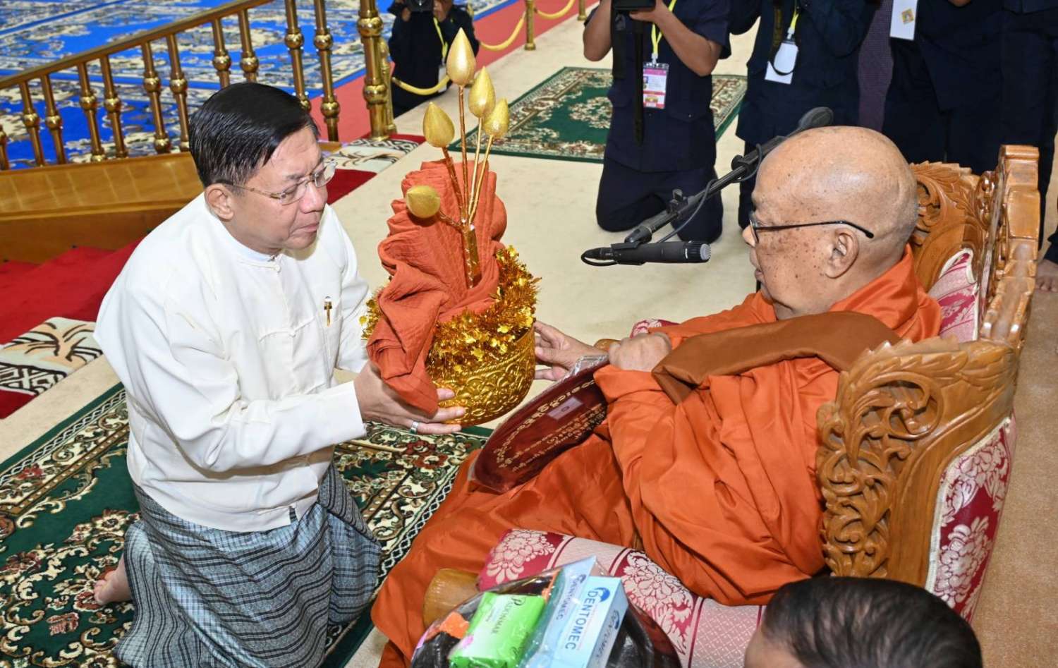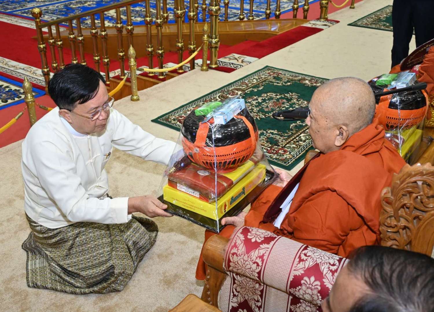 အဆိုပါအခမ်းအနားသို့ နေပြည်တော်၊ လယ်ဝေးမြို့၊ ပေါက်မြိုင်ကျောင်းတိုက် ပဓာနနာယက အဘိဓဇမဟာရဋ္ဌဂုရု ဘဒ္ဒန္တ ဇနိန္ဒ၊ နိုင်ငံတော်သြဝါဒါစရိယ၊ တပ်ကုန်းမြို့၊ မဟာသီဟနာဒကျောင်းတိုက်ဆရာတော် အဘိဓဇ မဟာရဋ္ဌဂုရု ဘဒ္ဒန္တ အာစိဏ္ဏတို့အမှူးပြုသော ဆရာတော်ကြီးများ ကြွရောက်ချီးမြှင့်တော်မူကြပြီး နိုင်ငံတော်စီမံအုပ်ချုပ်ရေးကောင်စီဥက္ကဋ္ဌ နိုင်ငံတော်ဝန်ကြီးချုပ်၊ နိုင်ငံတော်စီမံအုပ်ချုပ်ရေးကောင်စီဒုတိယဥက္ကဋ္ဌ ဒုတိယဝန်ကြီးချုပ် ဒုတိယဗိုလ်ချုပ်မှူးကြီး စိုးဝင်း၊ ကောင်စီအတွင်းရေးမှူး၊ တွဲဖက်အတွင်းရေးမှူး၊ ကောင်စီဝင်များ၊ ပြည်ထောင်စုအဆင့်ပုဂ္ဂိုလ်များ၊ ပြည်ထောင်စုဝန်ကြီးများ၊ နေပြည်တော်ကောင်စီဥက္ကဋ္ဌ၊ ကာကွယ်ရေးဦးစီးချုပ်ရုံးမှ အဆင့်မြင့်တပ်မတော်အရာရှိကြီးများ၊ နေပြည်တော်တိုင်းစစ်ဌာနချုပ်တိုင်းမှူးနှင့် တာဝန်ရှိသူများ တက်ရောက်ကြသည်။
