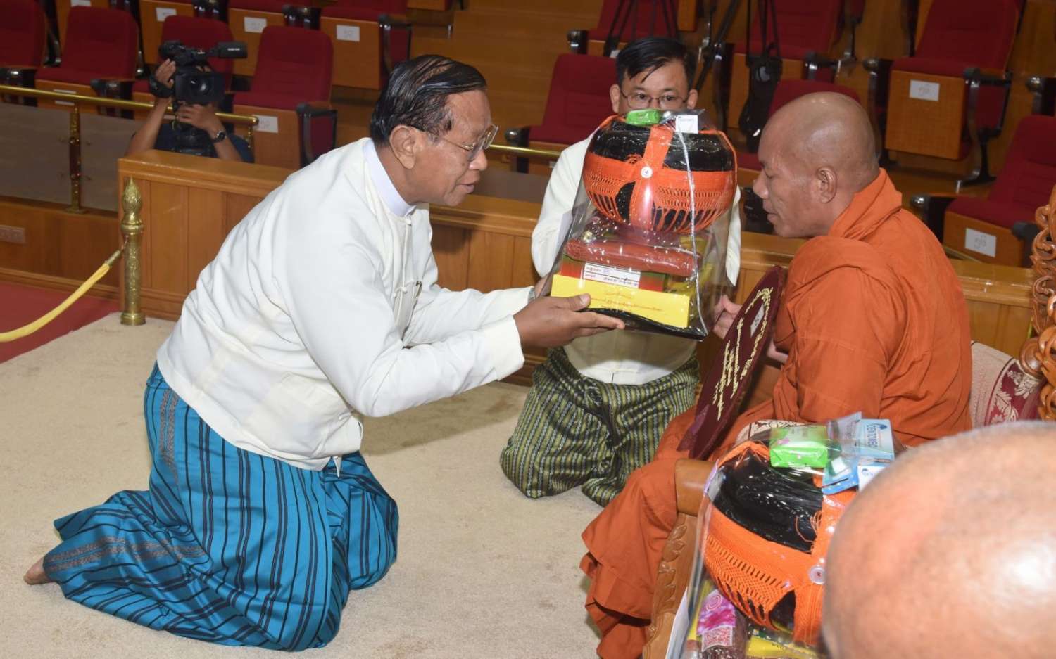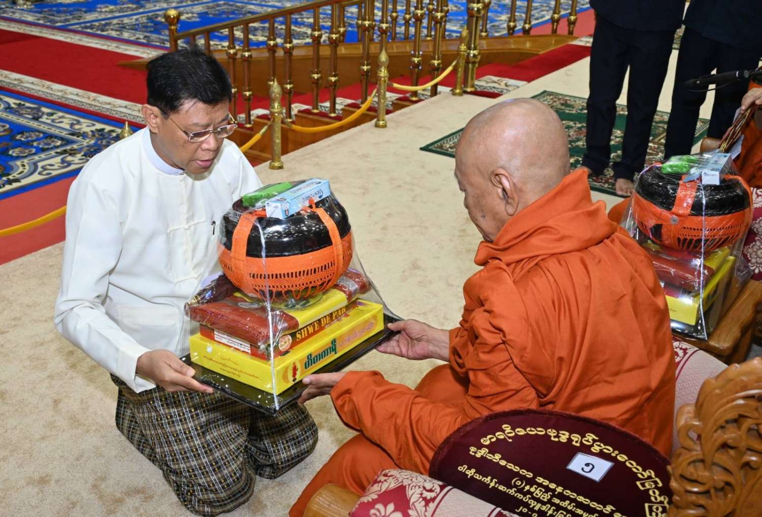 ယင်းနောက် နိုင်ငံတော်စီမံအုပ်ချုပ်ရေးကောင်စီဒုတိယဥက္ကဋ္ဌ ဒုတိယဝန်ကြီးချုပ်က မဟာသီဟနာဒကျောင်းတိုက် ဆရာတော်ကြီးထံ ဝါဆိုသင်္ကန်းနှင့် လှူဖွယ်ပစ္စည်းများကို ဆက်ကပ်လှူဒါန်းသည်။ ဆက်လက်၍ ကောင်စီအတွင်းရေးမှူး၊ တွဲဖက်အတွင်းရေးမှူး၊ ကောင်စီဝင်များ၊ ပြည်ထောင်စုအဆင့်ပုဂ္ဂိုလ်များက ဆရာတော်၊ သံဃာတော်များထံ ဝါဆိုသင်္ကန်းနှင့် လှူဖွယ်ပစ္စည်းများကို အသီးသီးဆက်ကပ်လှူဒါန်းကြသည်။