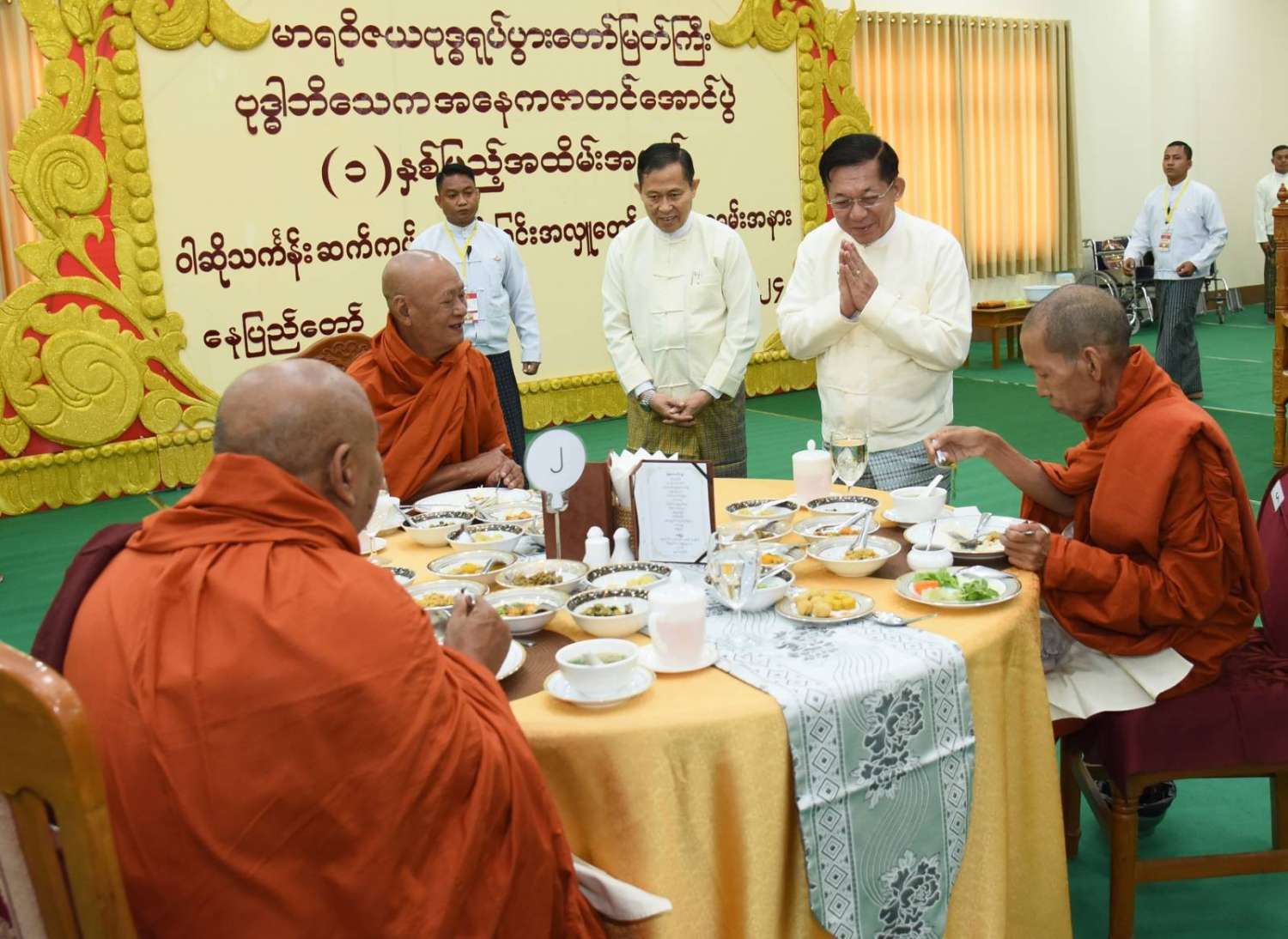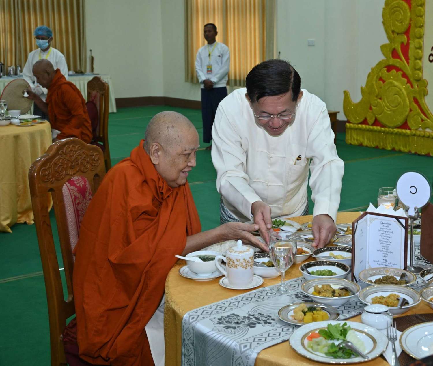 အခမ်းအနားအပြီးတွင် နိုင်ငံတော်စီမံအုပ်ချုပ်ရေးကောင်စီဥက္ကဋ္ဌ နိုင်ငံတော်ဝန်ကြီးချုပ်နှင့် အခမ်းအနားတက်ရောက်လာကြသူများသည် ဆရာတော်၊ သံဃာတော်များအား နေ့ဆွမ်းဆက်ကပ်လှူဒါန်းကြသည်။