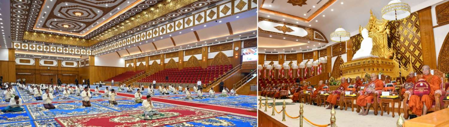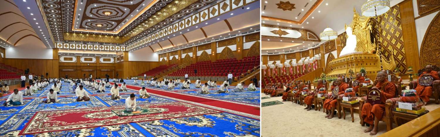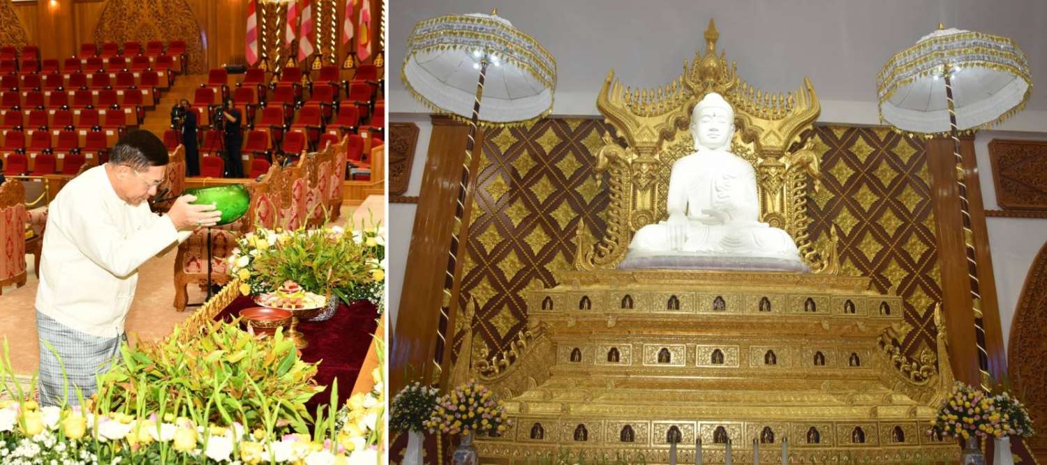 မာရဝိဇယ ဗုဒ္ဓရုပ်ပွားတော်မြတ်ကြီး ဗုဒ္ဓါဘိသေကအနေကဇာတင်အောင်ပွဲ (၁) နှစ်ပြည့် အထိမ်းအမှတ် ဝါဆိုသင်္ကန်းဆက်ကပ်လှူဒါန်းပွဲ မင်္ဂလာအခမ်းအနားကို ယနေ့နံနက်ပိုင်းတွင် နေပြည်တော်၊ မာရဝိဇယဗုဒ္ဓဥယျာဉ်တော် ပရိဝုဏ်အတွင်းရှိ အဂ္ဂါဓိပတိသာသနာ့ဗိမာန်တော်ကြီး၌ကျင်းပရာ နိုင်ငံတော်စီမံအုပ်ချုပ်ရေးကောင်စီဥက္ကဋ္ဌ နိုင်ငံတော်ဝန်ကြီးချုပ် ဗိုလ်ချုပ်မှူးကြီး မင်းအောင်လှိုင် တက်ရောက်ကြည်ညိုပြီး ဝါဆိုသင်္ကန်းနှင့်လှူဖွယ်ပစ္စည်းများ ဆက်ကပ်လှူဒါန်းသည်။