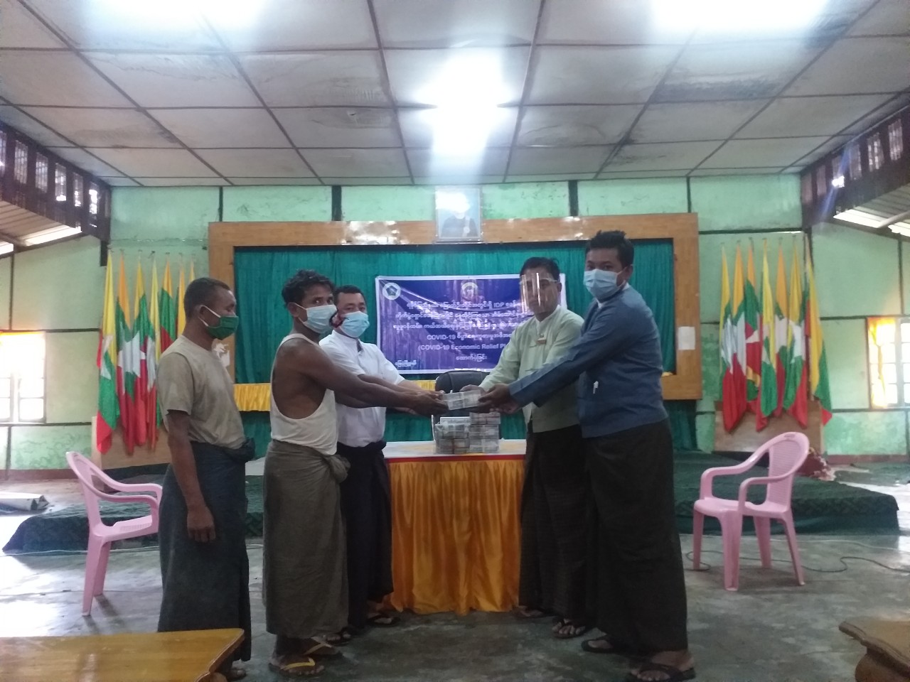 ကိုဗစ်-၁၉ စီးပွားရေးကုစားမှုအစီအစဉ် (COVID-19 Economic Relief Plan-CERP) အရ ရခိုင်ပြည်နယ်အတွင်းရှိ IDP/ တိုက်ပွဲရှောင်စခန်းများမှ နေရပ်စွန့်ခွာအိမ်ထောင်စုများအား စားသောက်ကုန်(၅)မျိုးဝယ်ယူရန် အိမ်ထောင်စု(၁)စုလျှင် ငွေကျပ် (၄၀,၀၀ဝိ/-)နှုန်းဖြင့် ထောက်ပံ့ခြင်းကို လူမှုဝန်ထမ်း၊ ကယ်ဆယ်ရေးနှင့် ပြန်လည်နေရာချထားရေးဝန်ကြီးဌာနက ဆောင်ရွက်လျက်ရှိသည်။