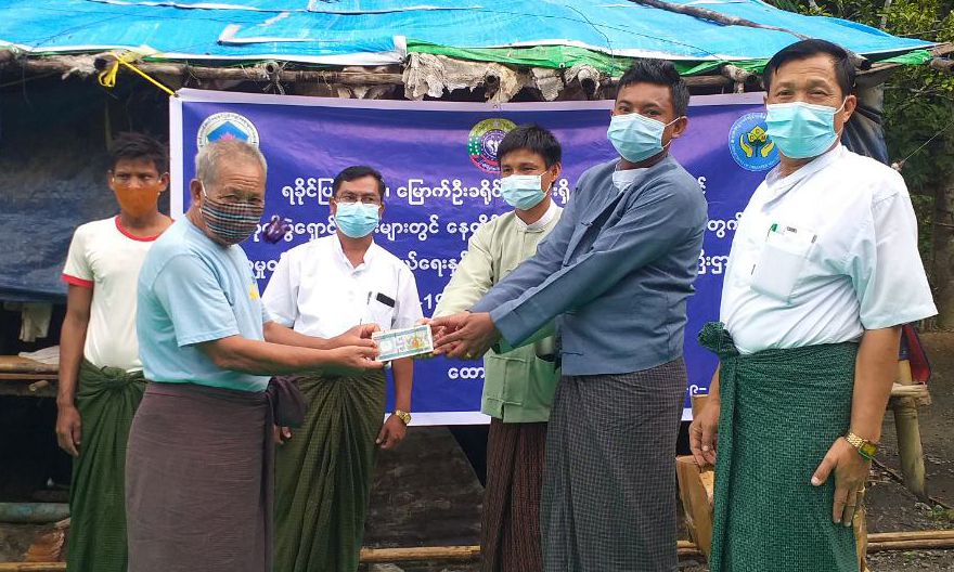 ကိုဗစ်-၁၉ စီးပွားရေးကုစားမှုအစီအစဉ် (COVID-19 Economic Relief Plan-CERP) အရ ရခိုင် ပြည်နယ်အတွင်းရှိ IDP/ တိုက်ပွဲရှောင်စခန်းများမှ နေရပ်စွန့်ခွာအိမ်ထောင်စုများအား စားသောက်ကုန်(၅) မျိုးဝယ်ယူရန် အိမ်ထောင်စု(၁)စုလျှင် ငွေကျပ်(၄၀,၀၀ဝိ/-)နှုန်းဖြင့်ထောက်ပံ့ခြင်းကို လူမှုဝန်ထမ်း၊ ကယ်ဆယ် ရေးနှင့် ပြန်လည်နေရာချထားရေးဝန်ကြီးဌာနက ဆောင်ရွက်လျက်ရှိသည်။