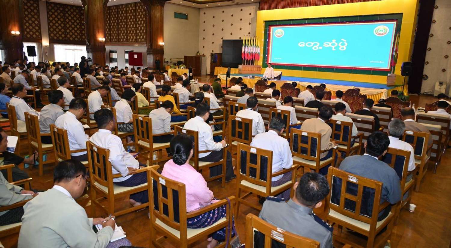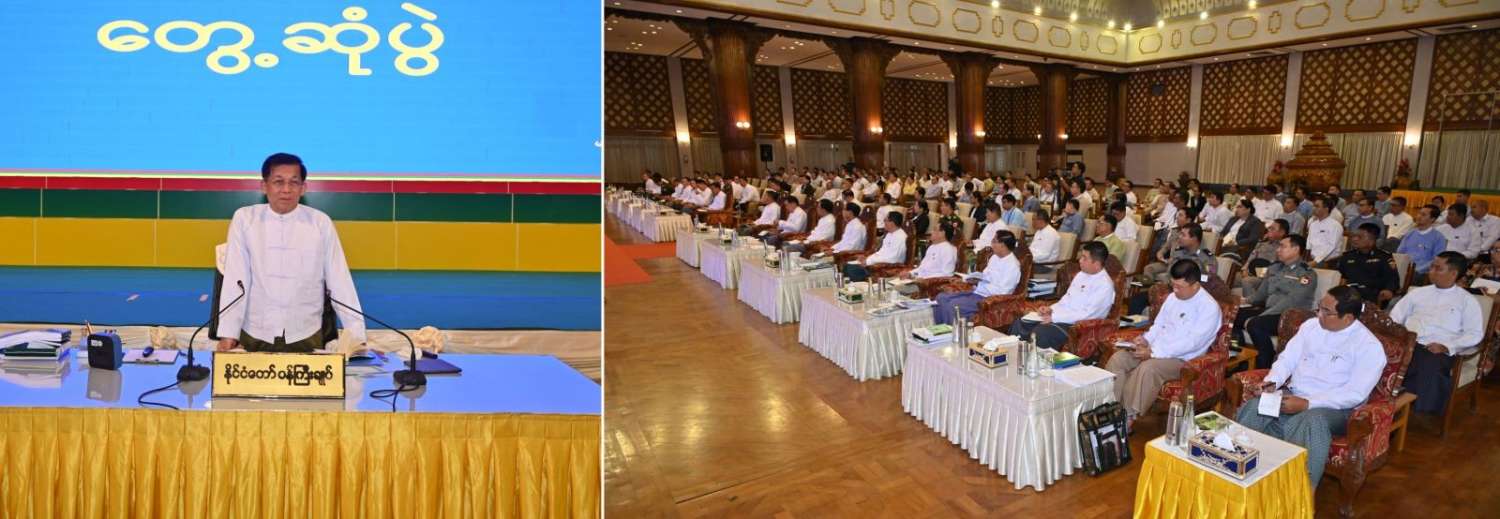 မိမိတို့အနေဖြင့် လာမည့်ရွေးကောက်ပွဲကို လွတ်လပ်ပြီးတရားမျှတသည့် ရွေးကောက်ပွဲဖြစ်စေရေး ဆောင်ရွက်သွားမည်ဖြစ်ပြီး အထောက်အကူရစေရန် လာမည့်အောက်တိုဘာလ ၁ ရက်မှစတင်၍ လူဦးရေနှင့်အိမ်အကြောင်းအရာ သန်းခေါင်စာရင်းကို ကောက်ယူသွားမည်ဖြစ်ကြောင်း၊ သန်းခေါင်စာရင်းကောက်ယူမှုသည် နိုင်ငံအတွက် များစွာအကျိုးရှိသည့်လုပ်ငန်းရပ်ဖြစ်ပြီး ရရှိလာသည့် အချက်အလက်များအပေါ် မူတည်၍ နိုင်ငံ့အကျိုးအတွက် များစွာစီမံဆောင်ရွက်နိုင်မည်ဖြစ်ကြောင်း၊ ထို့ကြောင့် တိုင်းဒေသကြီးနှင့် ပြည်နယ်များအလိုက်မှ တာဝန်ရှိသူများအနေဖြင့် လူဦးရေနှင့်အိမ်အကြောင်းအရာသန်းခေါင်စာရင်းကောက်ယူခြင်းလုပ်ငန်း အောင်မြင်စေရေး ဝိုင်းဝန်းဆောင်ရွက်ပေးကြရန်လိုကြောင်း၊ နိုင်ငံရေးနှင့်ပတ်သက်၍ နိုင်ငံ့ဝန်ထမ်းများအနေဖြင့် ပါတီနိုင်ငံရေးကင်းရှင်းရမည်ဖြစ်ပြီး နိုင်ငံကောင်းမွန်စေရေးအတွက် နိုင်ငံ့အရေးကိုဆောင်ရွက်ရမည်သာဖြစ်ကြောင်း၊ နိုင်ငံ့ဝန်ထမ်းများအနေဖြင့် တာဝန်များ ကျေပွန်စွာထမ်းဆောင်၍ မိမိတို့တာဝန်ကျရာနေရာများအလိုက် ဒေသအကျိုး၊ နိုင်ငံ့အကျိုးကို တတ်စွမ်းသရွေ့ဖော်ဆောင်ကြရန်မှာကြားလိုကြောင်းဖြင့် ပြောကြားသည်။